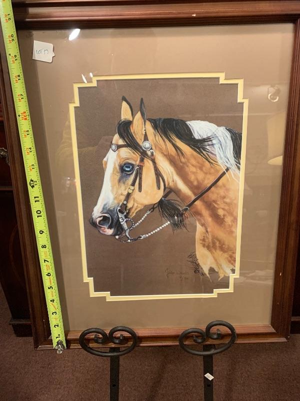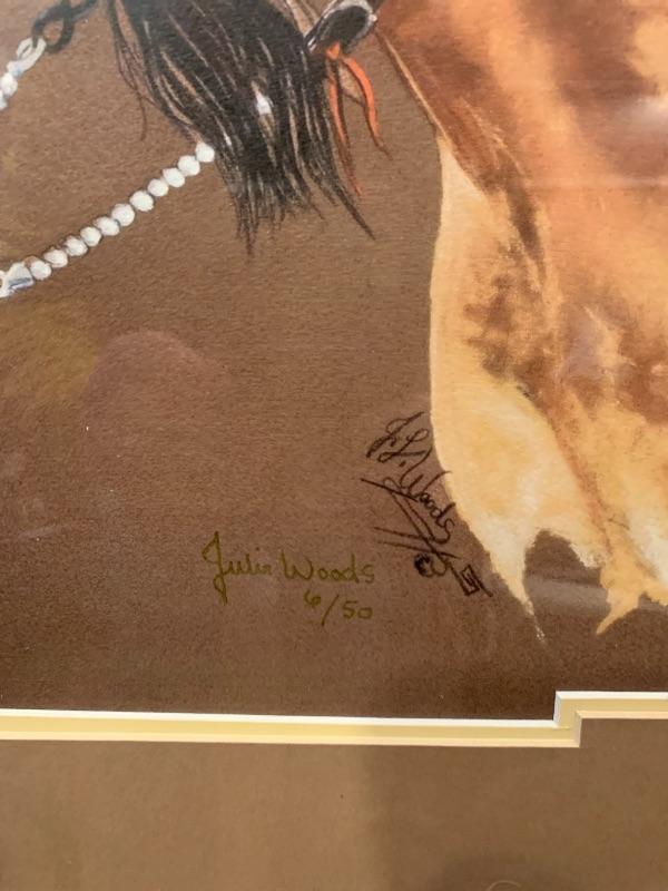 Lot 17 ““ signed and numbered Julie Woods framed horse print 18 x 22