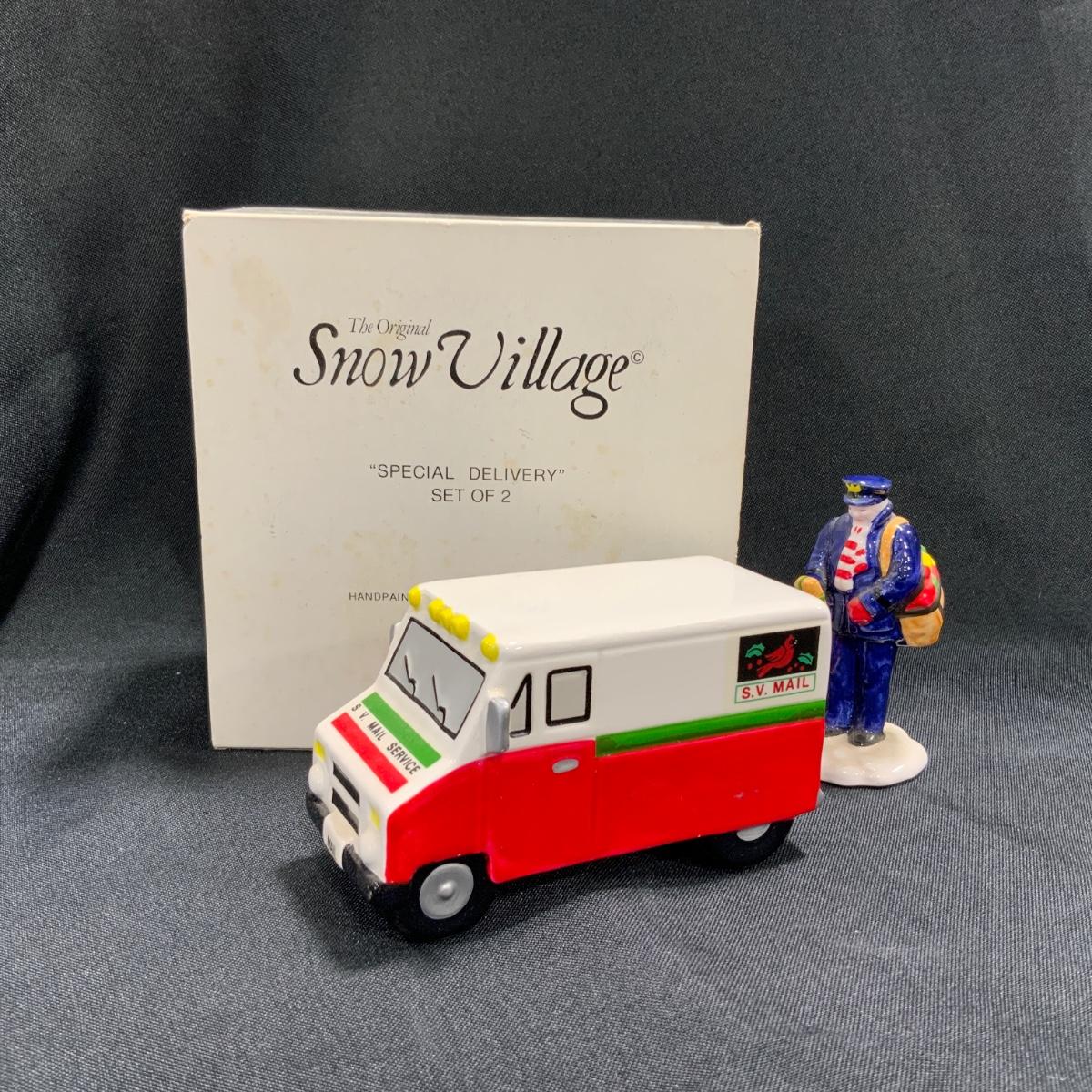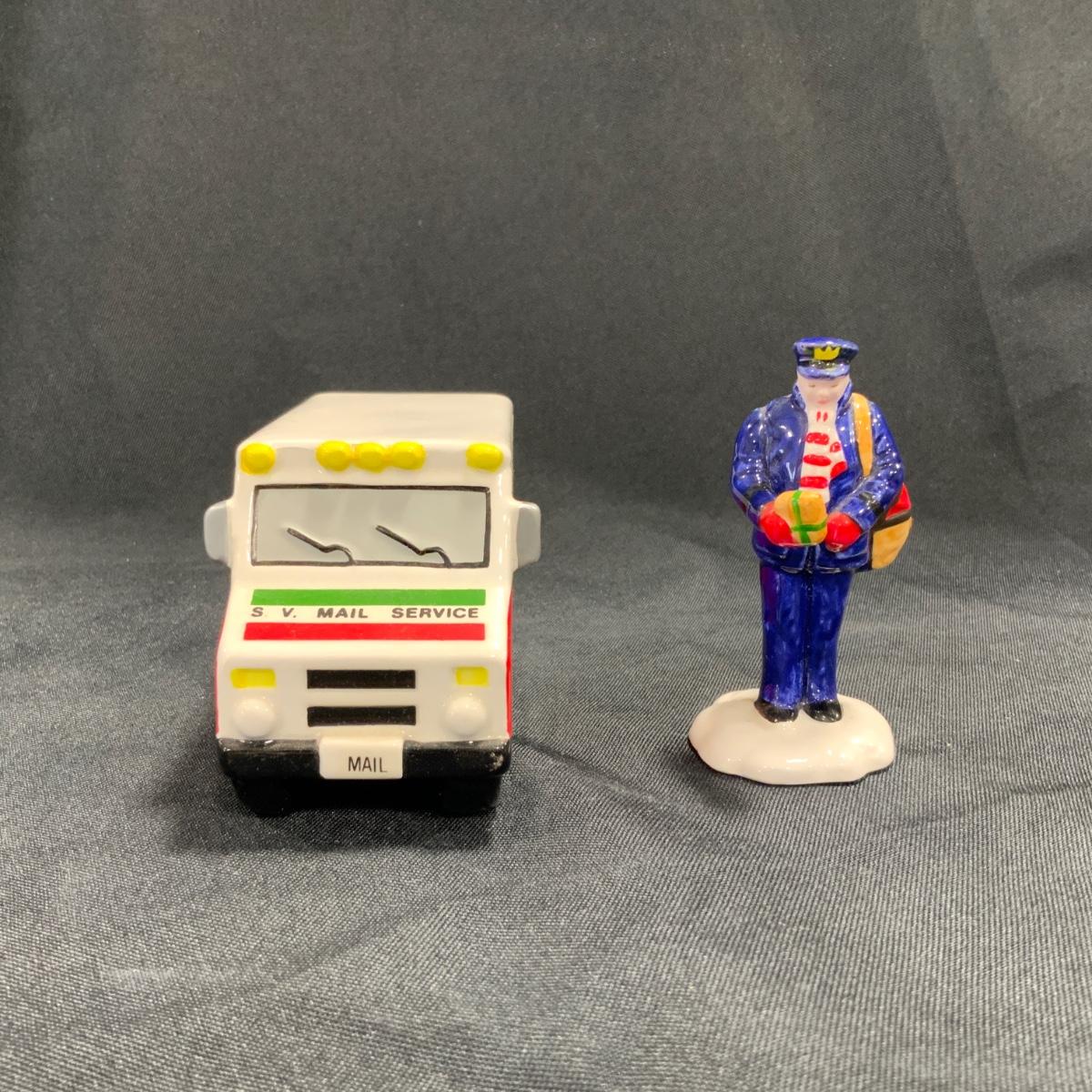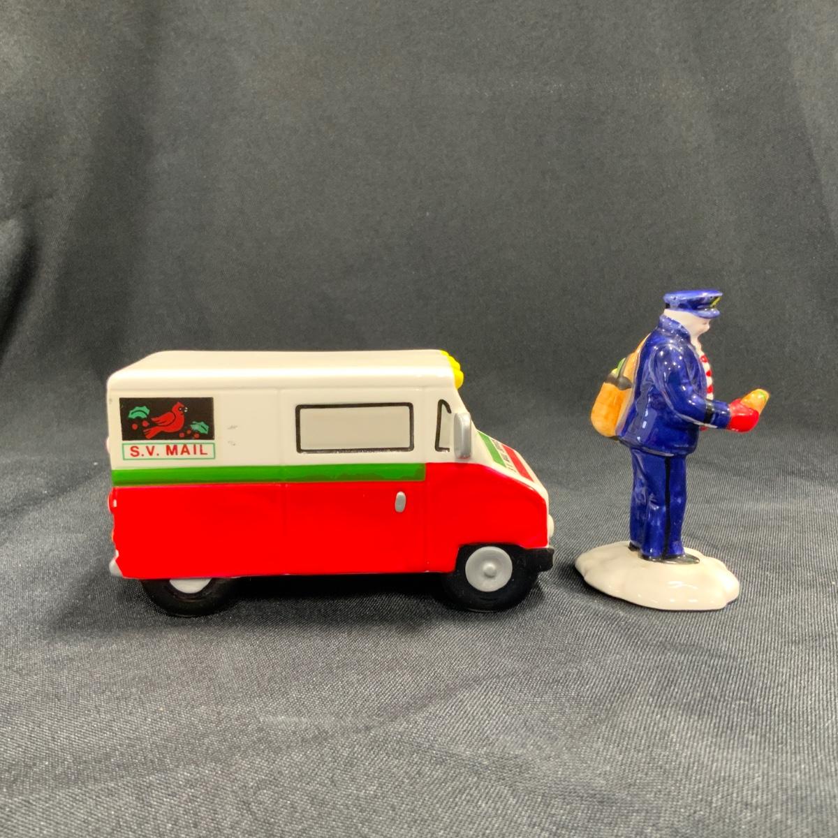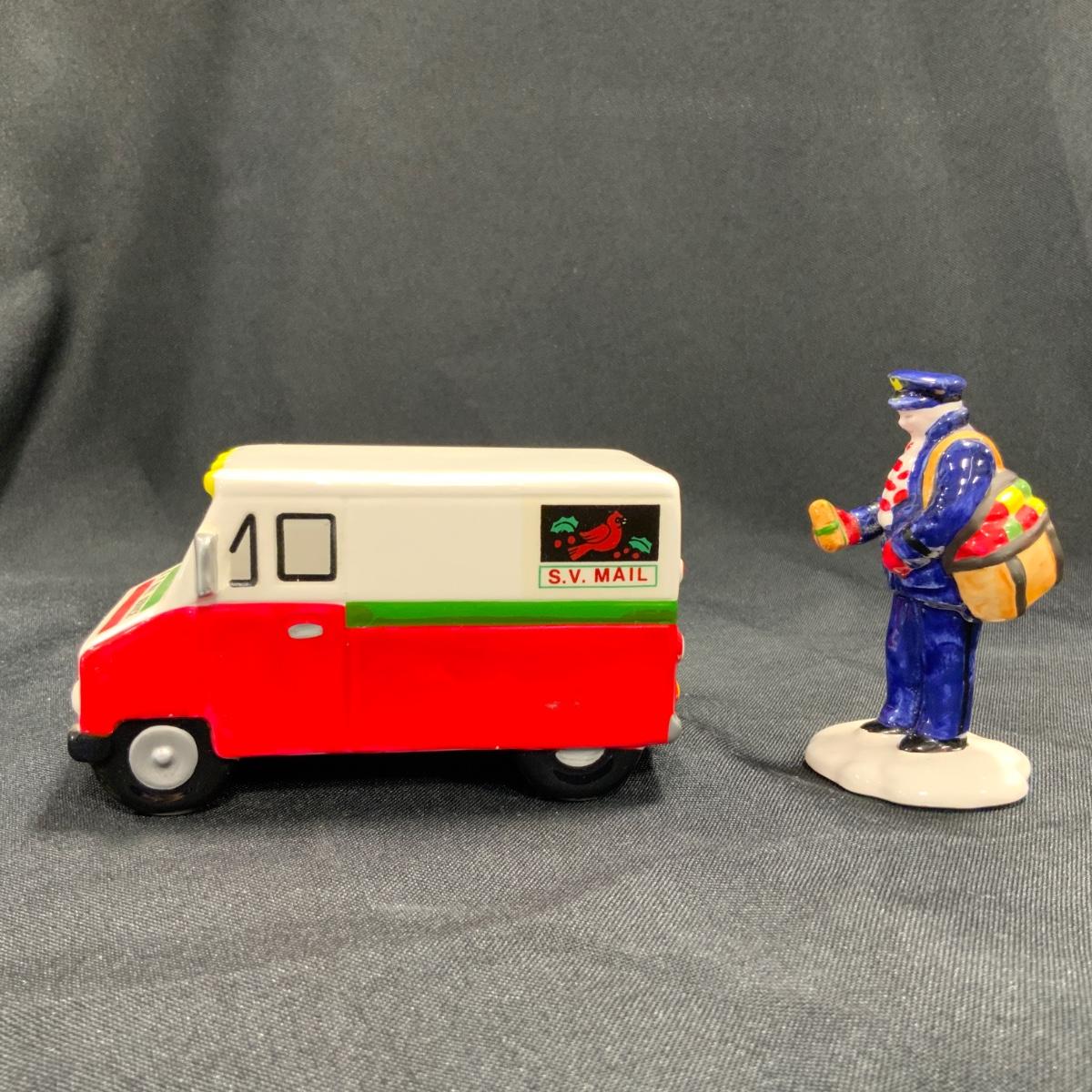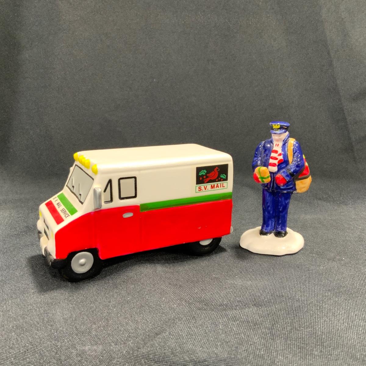 Vintage Department 56 Snow Village Special Delivery set of two, Postman and Truck. This truck is branded with the Snow Village Post Logo. Please see photos for details and condition. ::: Shipping is available on this lot. If you require shipping you must let us know at the close of the auction. We will coordinate with you after the item has been won. Shipping fees will include insurance up to or exceeding the value of all items being mailed. If you have any questions regarding this lot please contact the auctioneer either via this website, by direct email or by phone. PICK UP TIMES and other important information can be found in the TERMS and DESCRIPTION of the auction. Please take a look for pertinent information. Thanks! Any condition statement is given as a courtesy to a client, is an opinion, and should not be treated as a statement of fact. Reference to condition written, oral or within a condition report shall not be regarded as a full account of condition and may not include all defects, alterations, or restorations. Absence of a condition report does not imply a lot is flawless or lacking imperfections or damage. Katherine’s Auction & Appraisal Service shall have no responsibility for any error or omission. Returns shall not be accepted on the basis of condition.