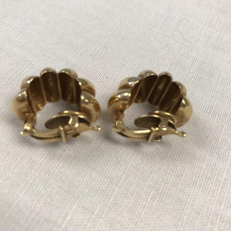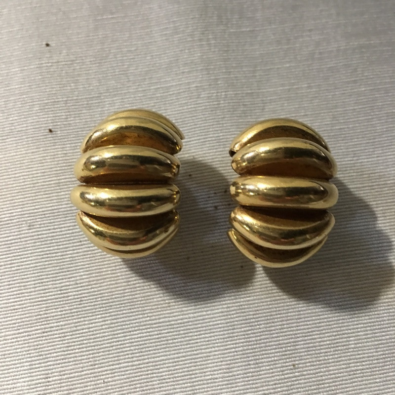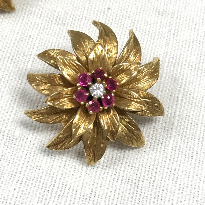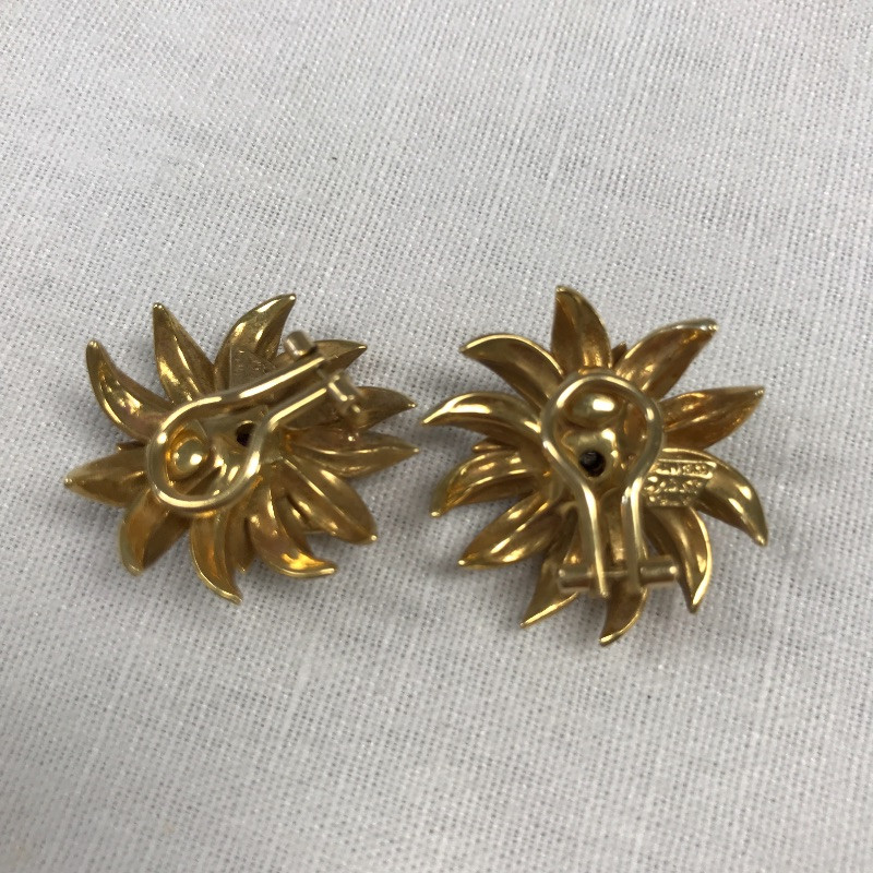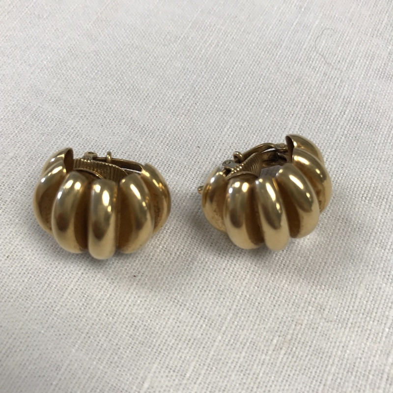 Own your very own Tiffany earrings with these two gorgeous pairs of clip-on ones. One pair are a Dahlia floral set with rubies and 10k gold (diamond does not test to be real). The second pair are curved 14k gold. These classic earrings will be a great addition to your jewelry collection.