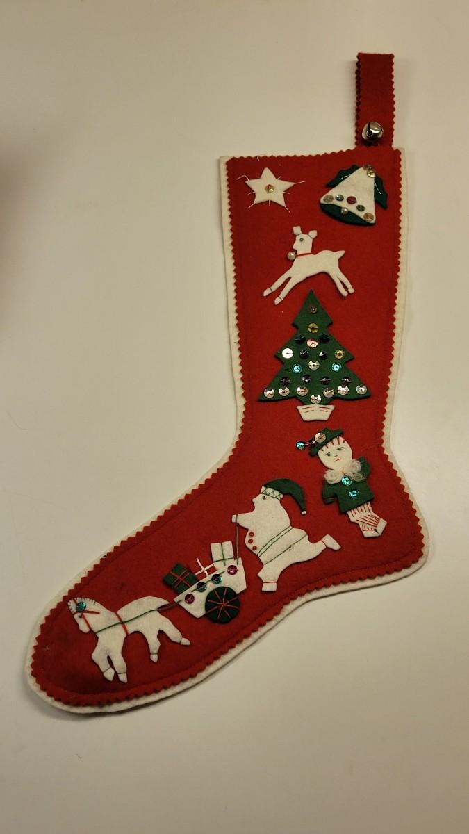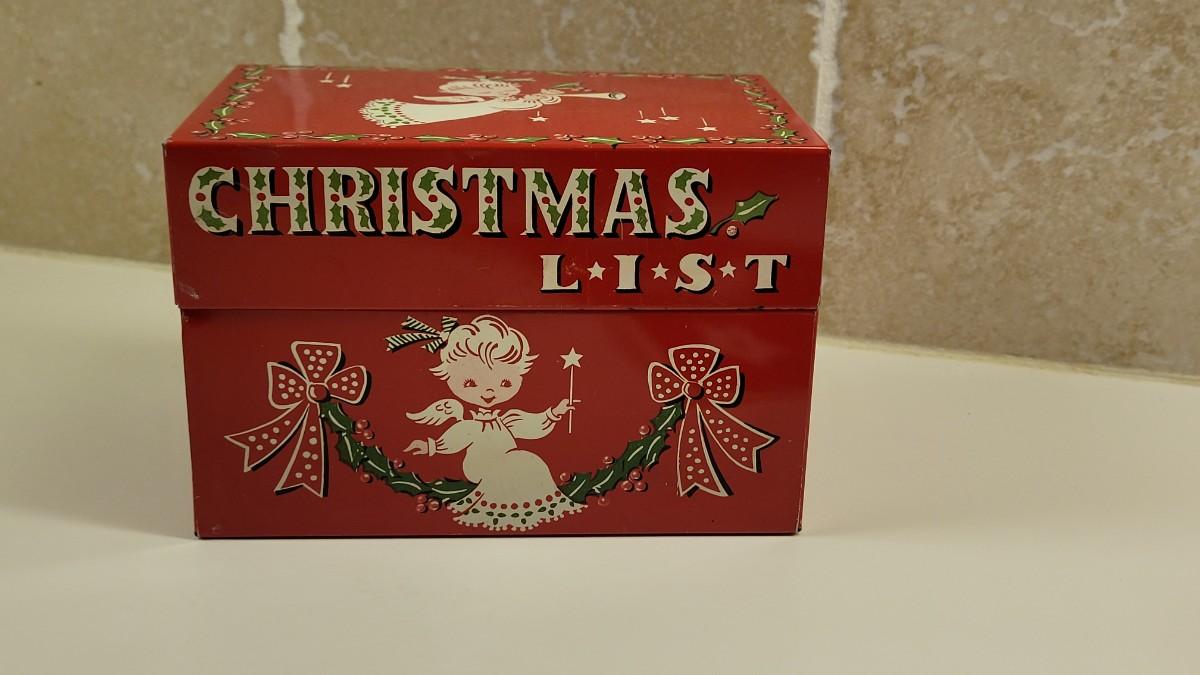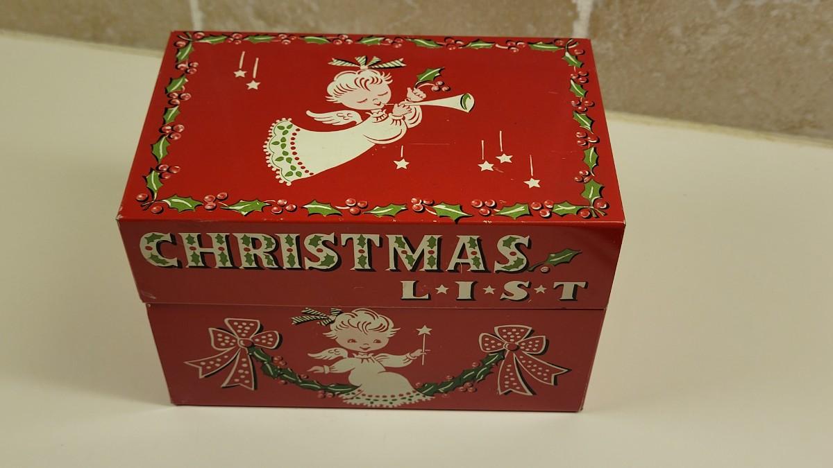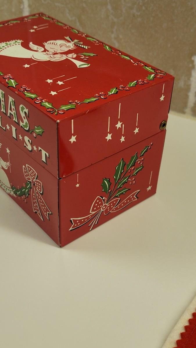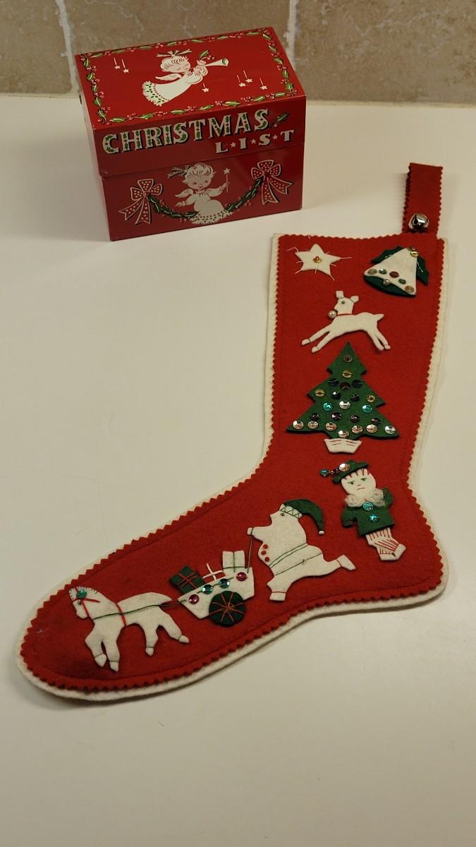 Lot 17: Vintage Beaucraft Metal Christmas List Box and Vintage Felt Christmas Stocking