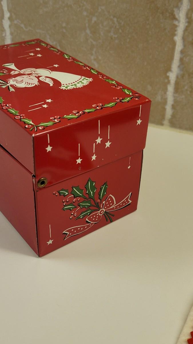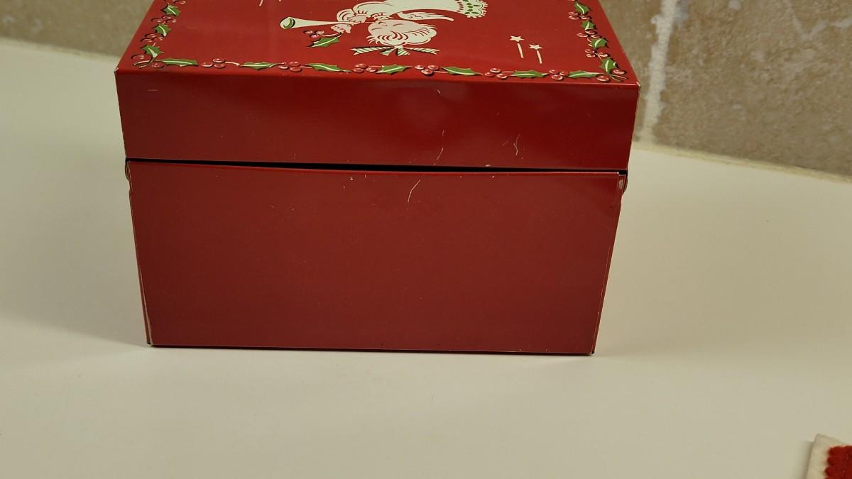 Fun Metal Recipe size Box and nice condition Felt Stocking.