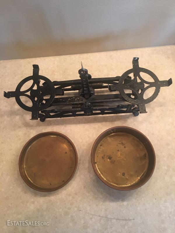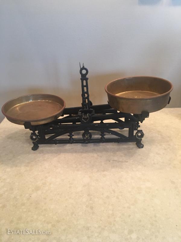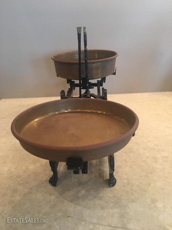 Lot 17 - Vintage Cast Iron Scale with Brass/Copper Pans