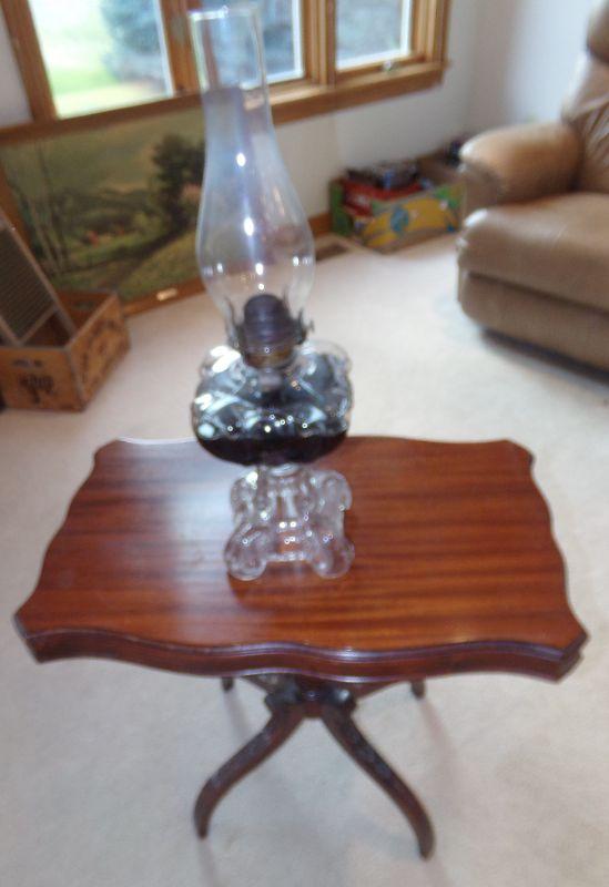LOT 17 VINTAGE OIL LAMP AND SIDE TABLE