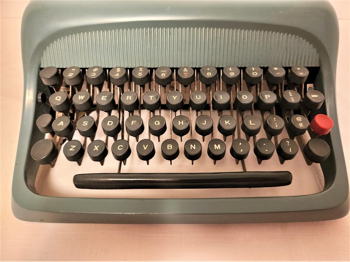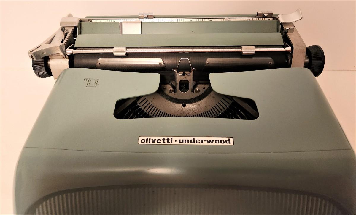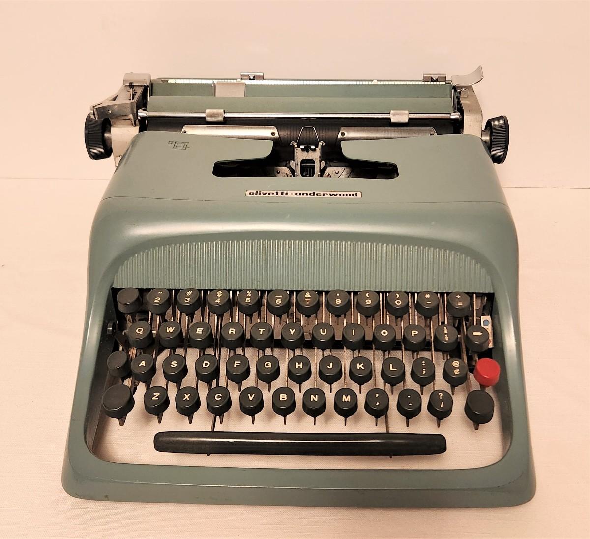 This clean vintage Silvetti typewriter does work - will eventually need a new ribbon. 11" across, 15" deep - good vintage condition. No case. What you see is what you get.
