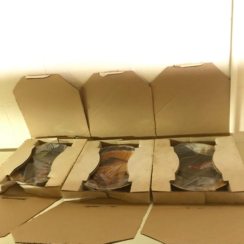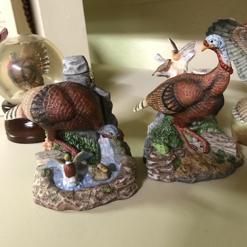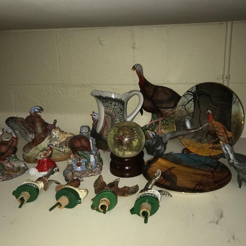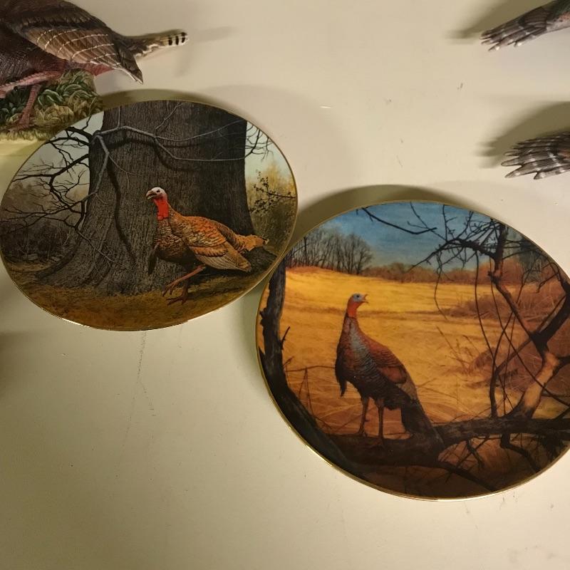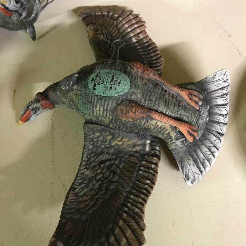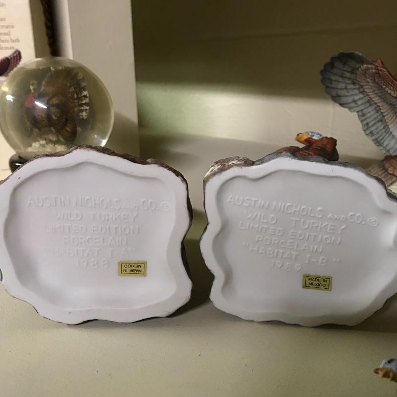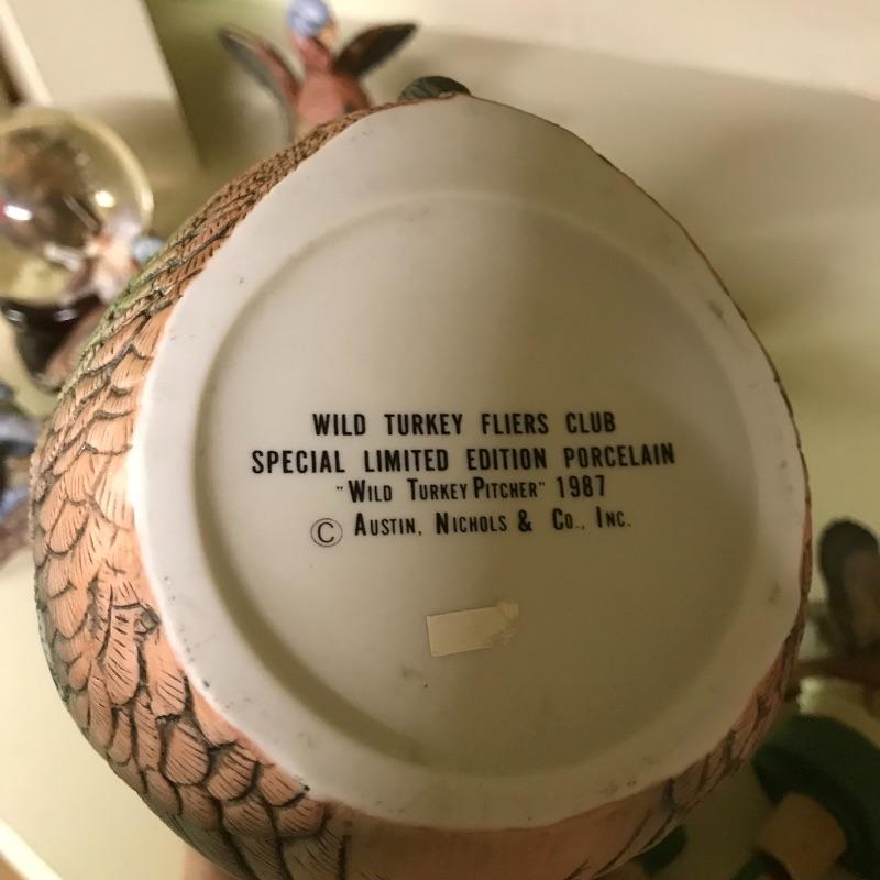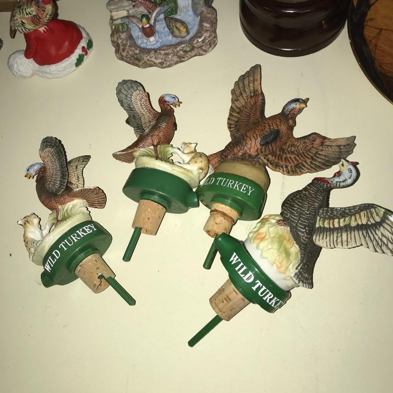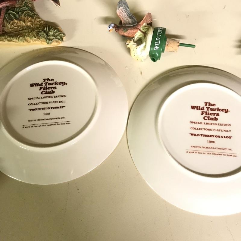 Great collection for any Wild Turkey fan! Large mid-80s Wild Turkey Fliers Club collectibles including four liquor bottle cork pour spouts, wall art, figurines, a snow globe and even a Christmas ornament. Three “Special Limited Edition” plates including two #1 1985 and one #2 1986. All three plates are in original plastic wrapping and shipping boxes. Two matching special limited edition figurines have metal hooks to hang if desired. All collectibles appear to be in great shape, one pour spout has a small chip in the wing. See photos. Shipping available.