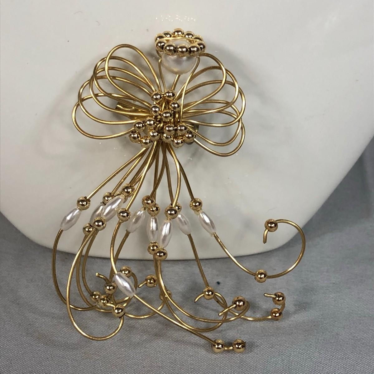 Lot 17 - Wire and Faux Pearl Angel Brooch