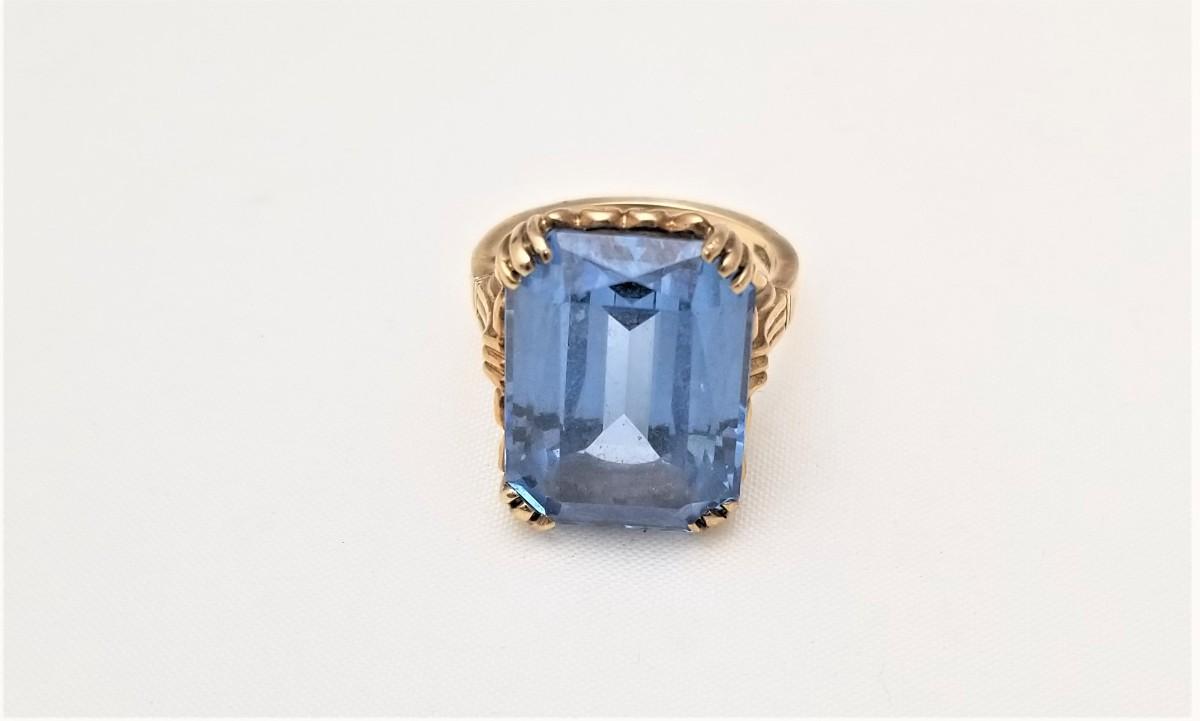 Lot #170 10kt Yellow Gold Ring - Gorgeous Blue stone, Size 6