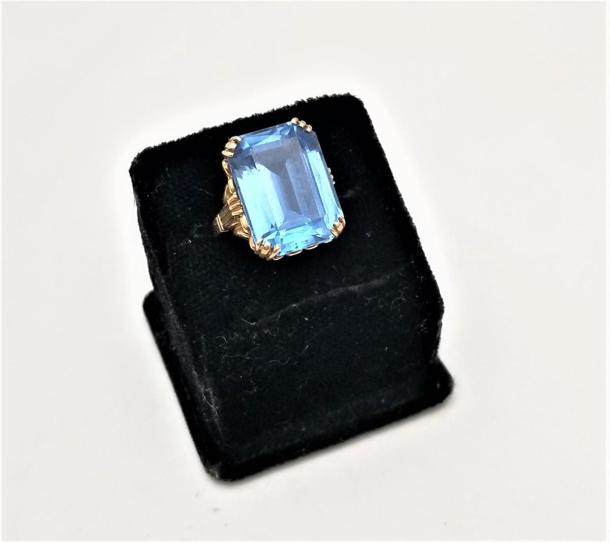 Lot #170   10kt Yellow Gold Ring - Gorgeous Blue stone, Size 6