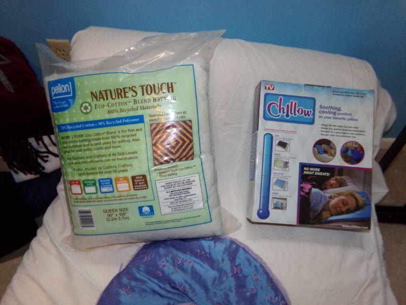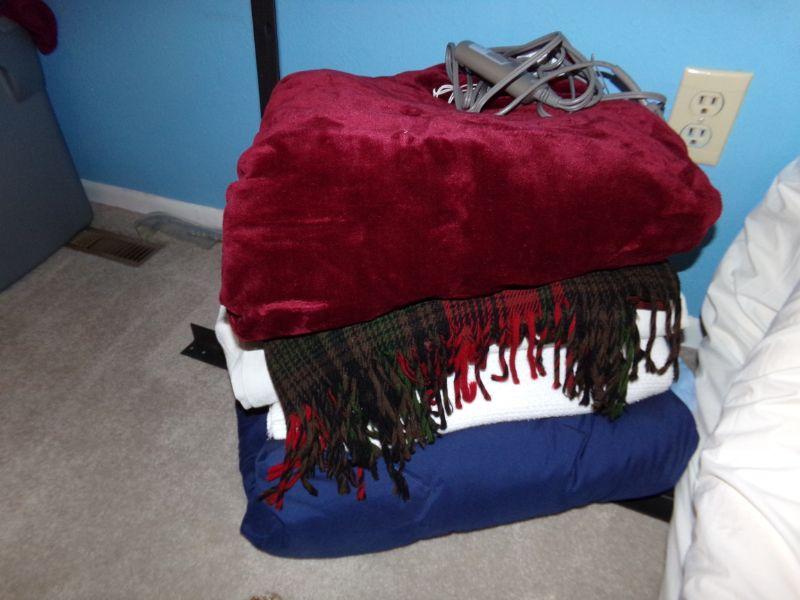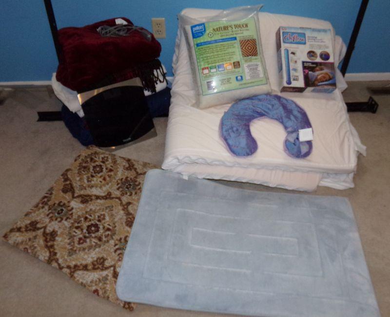 BLANKETS, QUEEN TEMPER PEDIC TYPE MATTRESS TOPPER, NECK PILLOWS, BATH MATS AND MORE