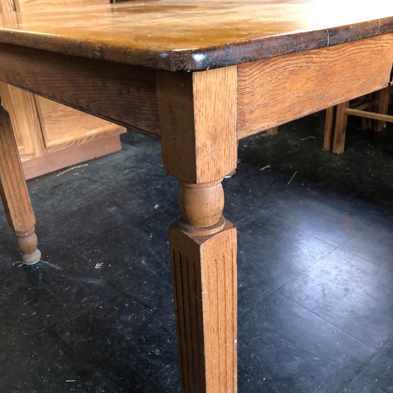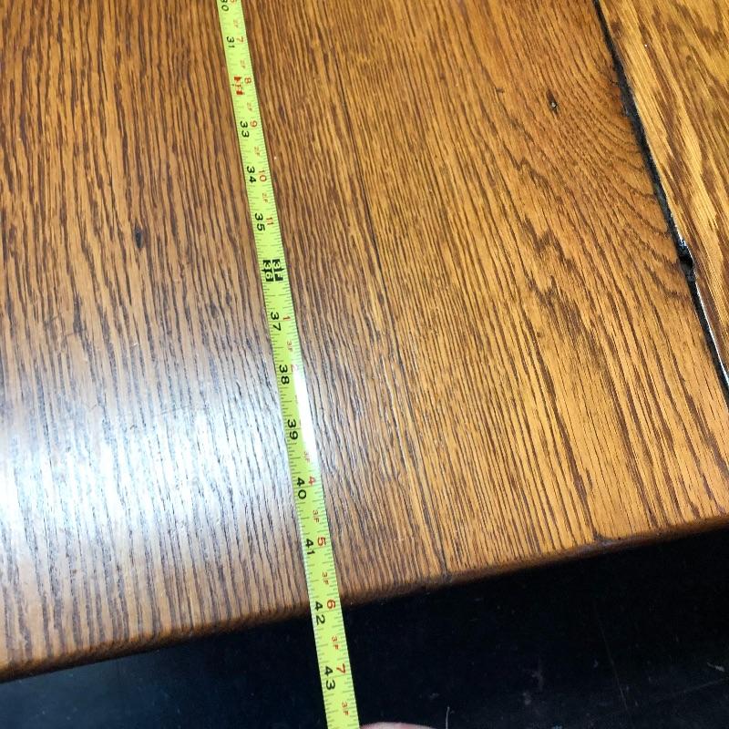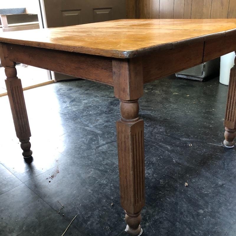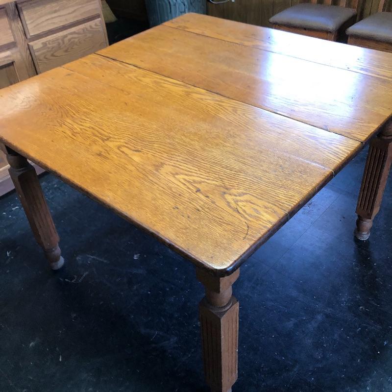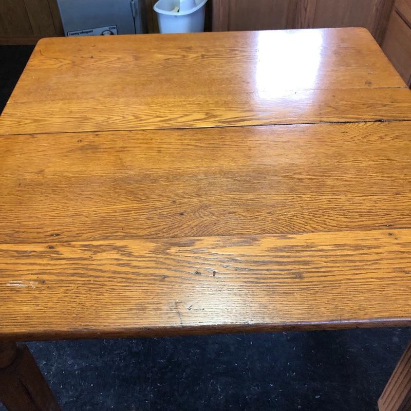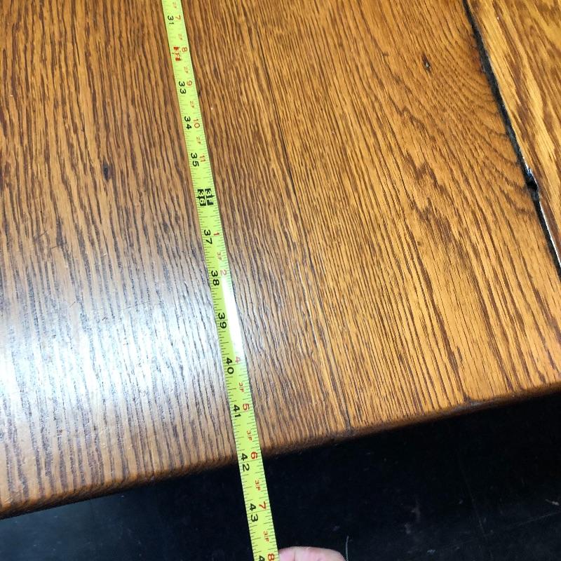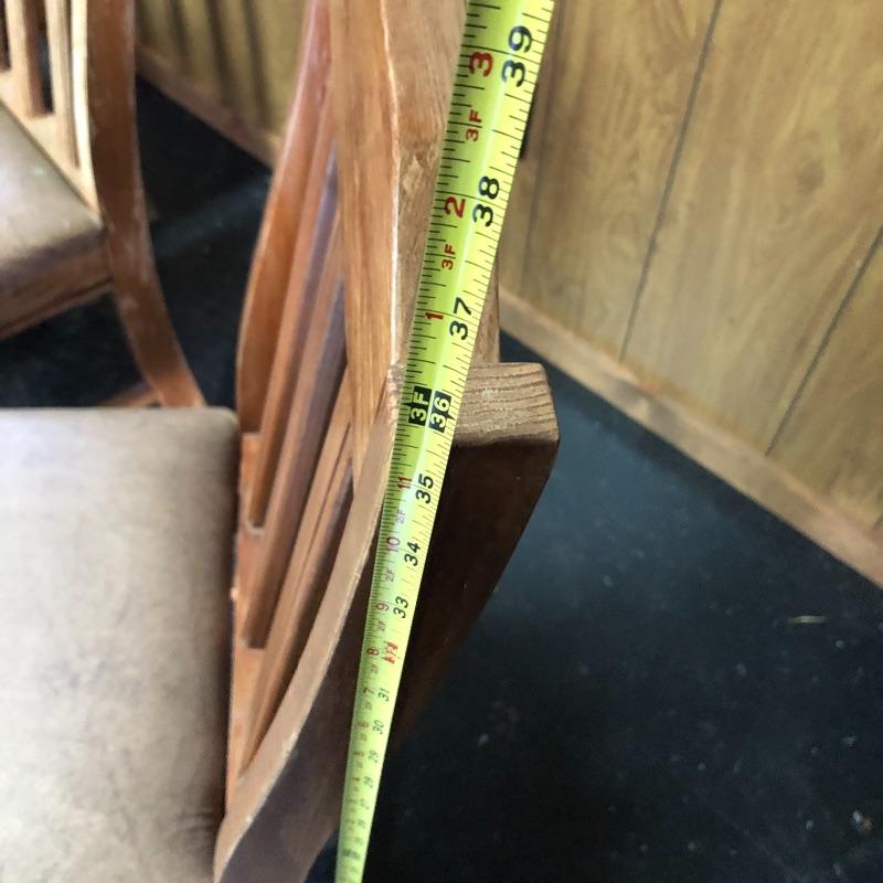 This lot includes a wooden table and four chairs. The table does not open nor include leaves. The dimensions are approximately 42” X 42”. It would be perfect for a smaller dining space. Chairs seats are upholstered with vinyl. Chair seat height is approximately 18.5”. Local pick up only.
