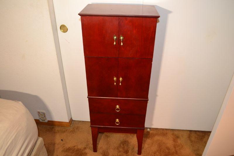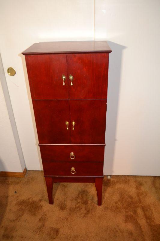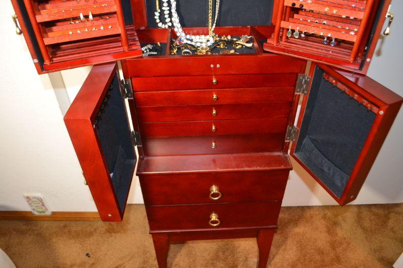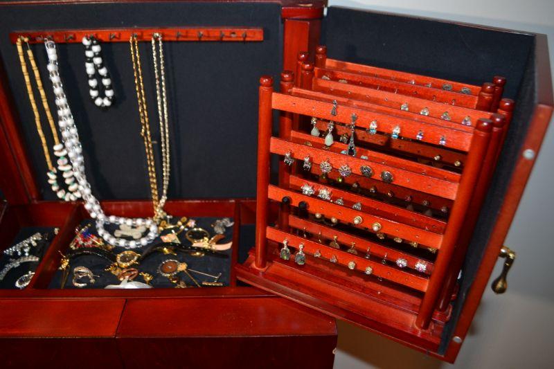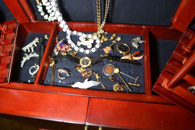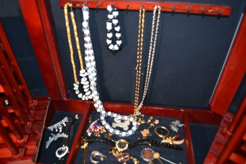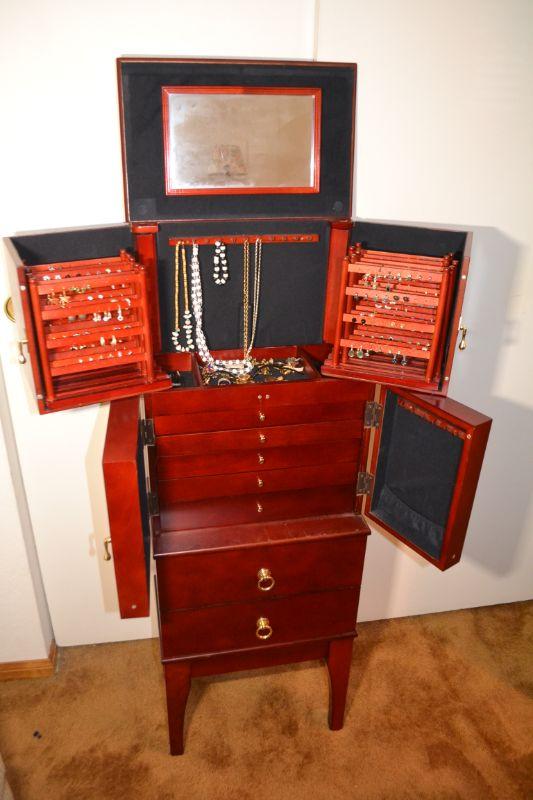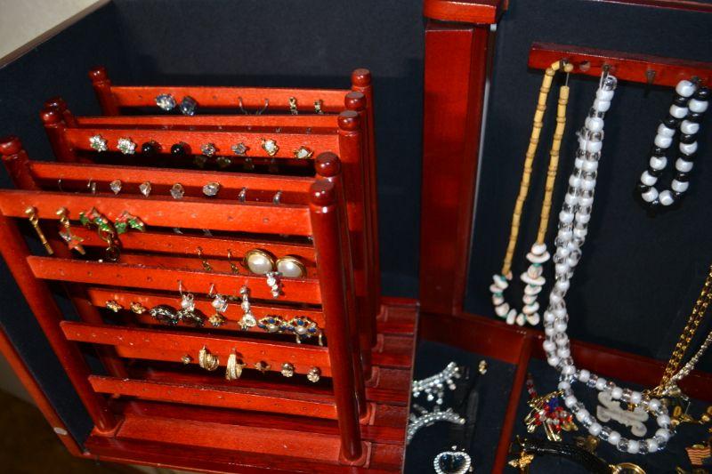 LOT 170 STANDING JEWELRY BOX AND COSTUME JEWELRY