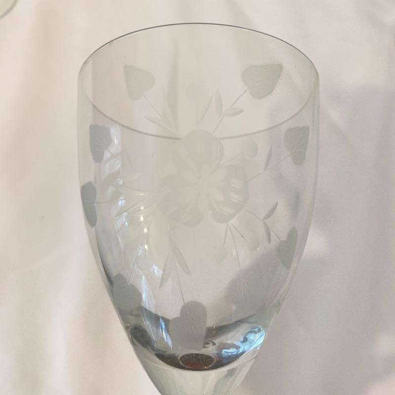 This lot contains 25 beautiful stemware pieces, such as wine glasses with flowery designs on them, different types of dessert glasses, and more. Some of the wine glasses are a bit dusty and one has a small chip in it (see pictures), but they are in otherwise good condition. Local pickup only.