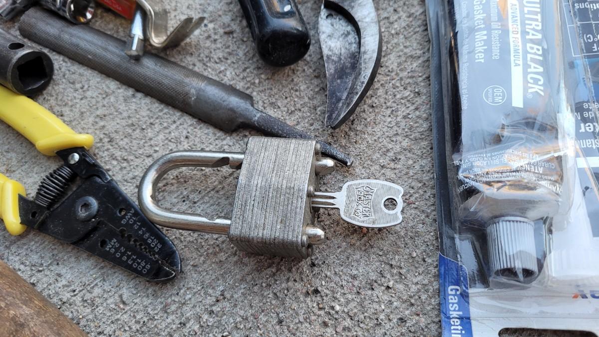 Lot 170: Assorted Toolbox Tray Tools feat MasterLock w/ Key