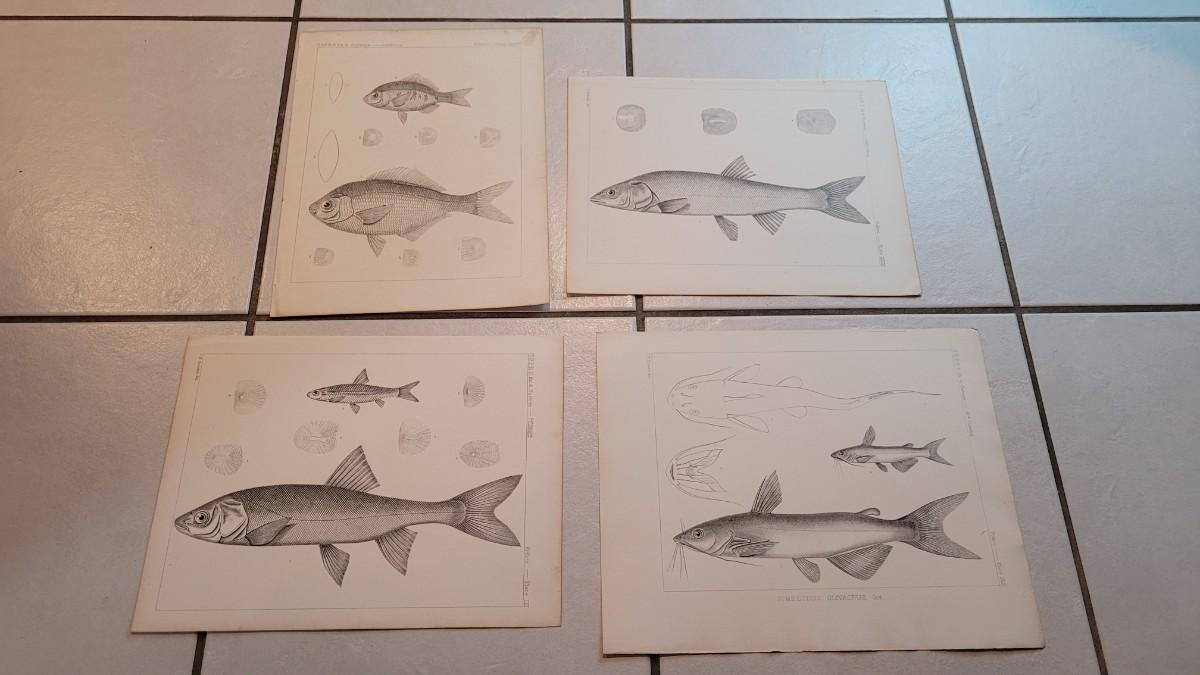 Lot 160: Set of (4) Antique Fish Biology Study Prints
