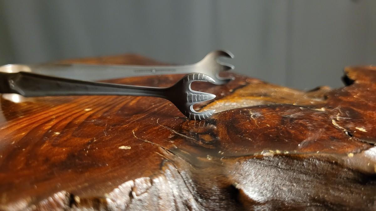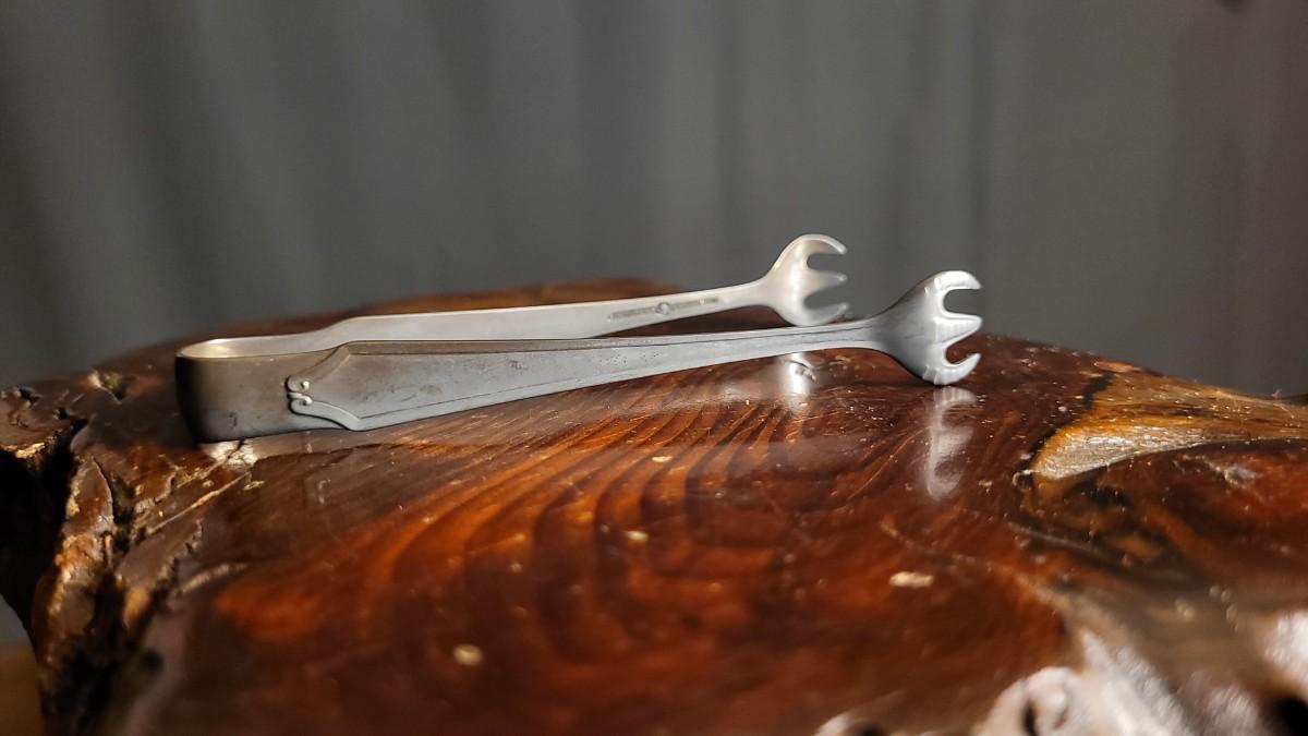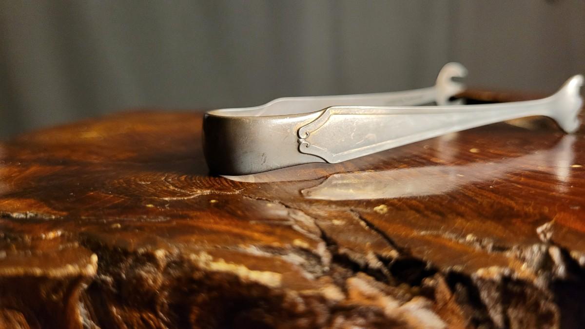 This Vintage Small tong set is by International and Sterling Silver. The pair measures about 4" and retain an unpolished patina that can only be achieved by the passage of time.