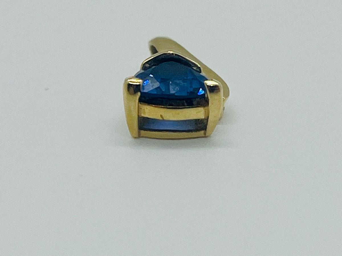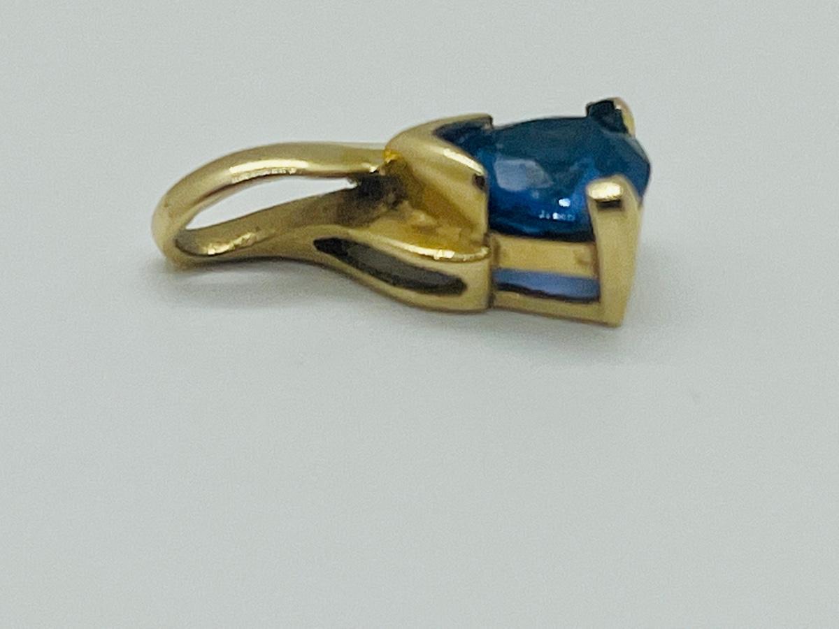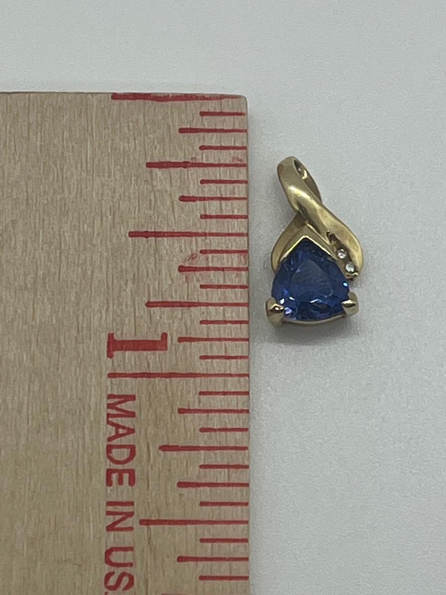 Appears blue in photo but has some purple tint so I believe it is tanzanite. See photo by ruler for more accurate color and you decide. 1.4g 14k. The pictures show condition, measurements if taken, and what is included in the lot. Due to the large amount that we photograph and the time frame, we are not always able to take measurements. All items unless noted, are pre-owned and have been used, and are untested. Thank you