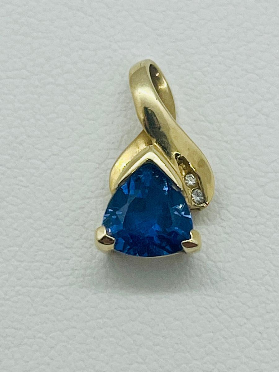 Lot 170: 14k GMA Yellow Gold & Tanzanite Pendant with 2 Diamond Chips