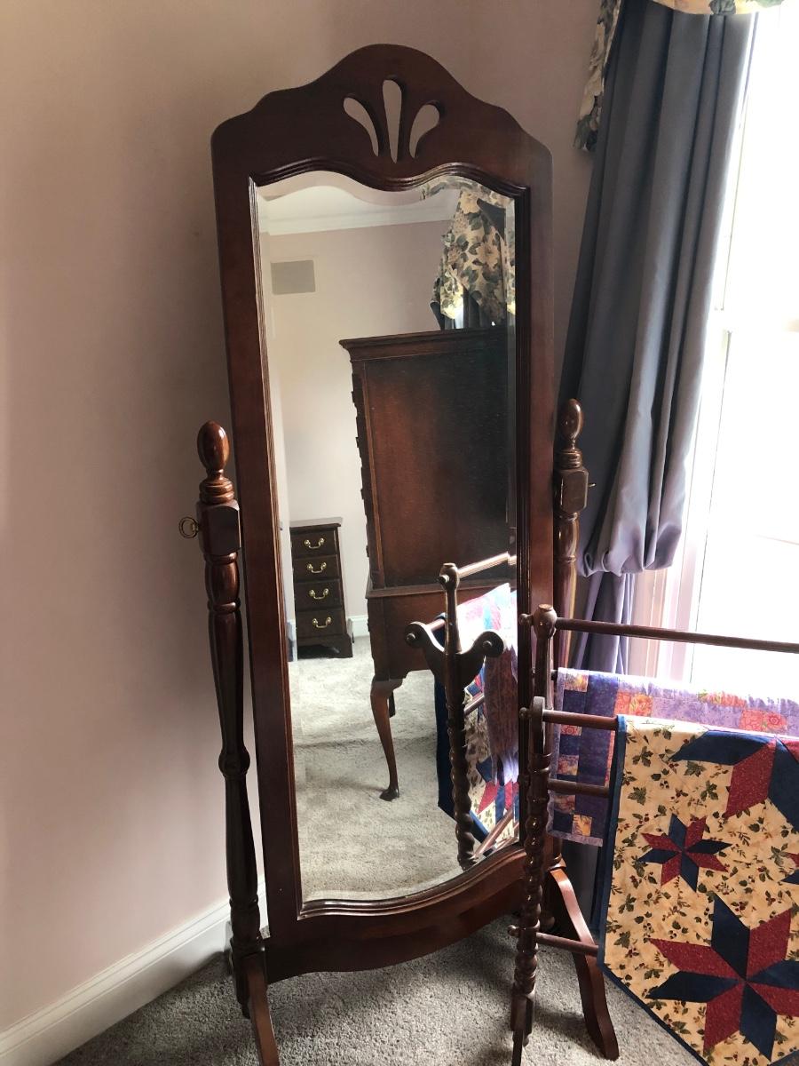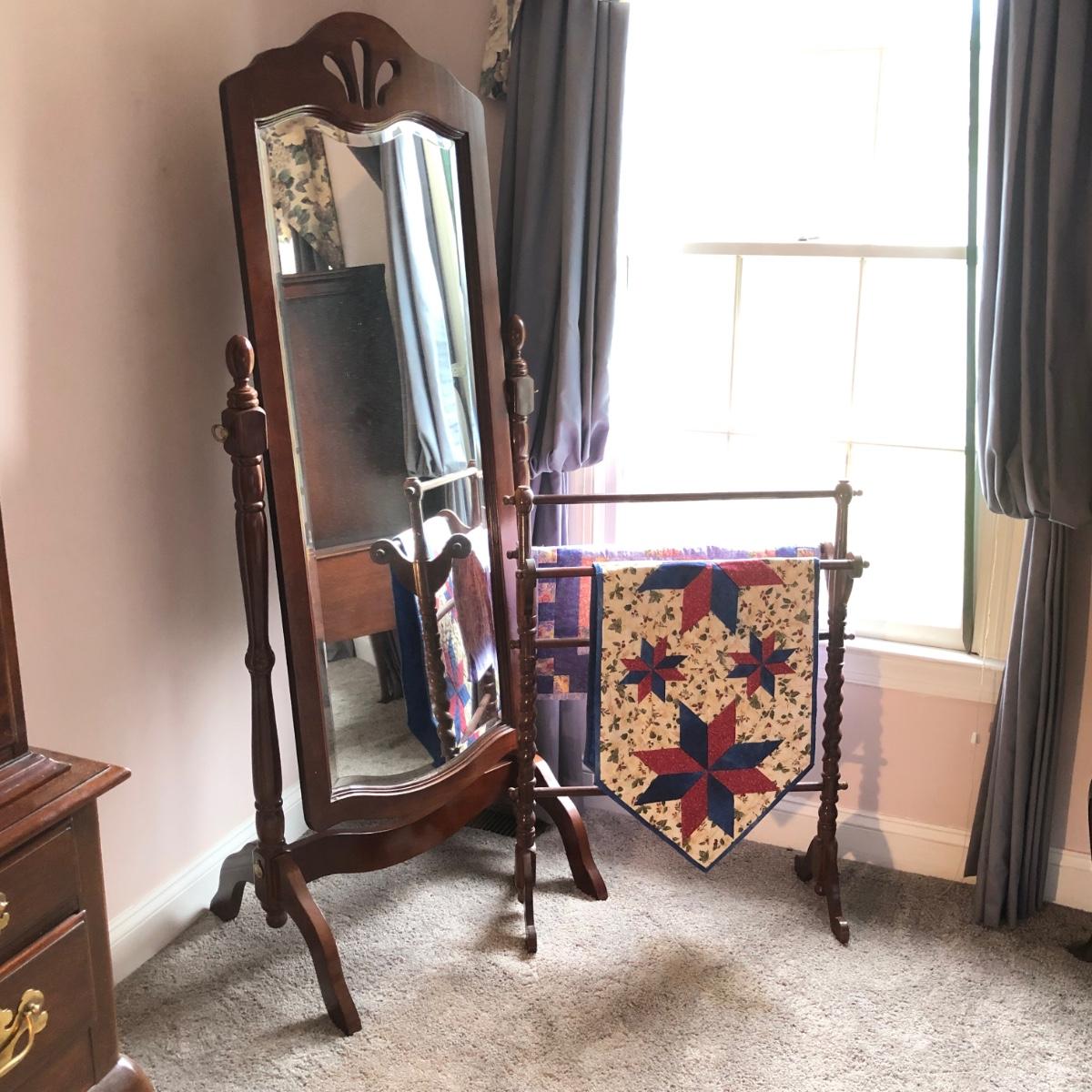 LOT 170M: Vintage Standing Mirror & Quilt Rack