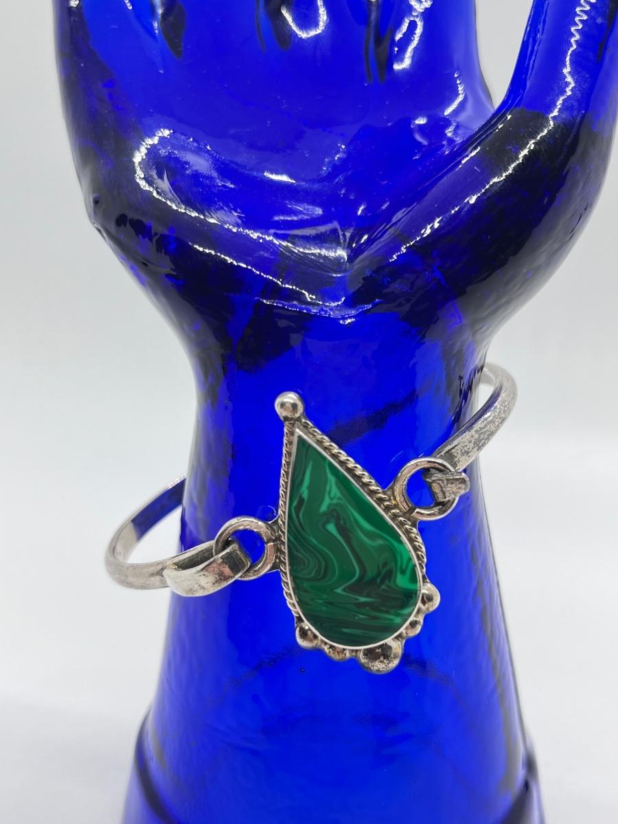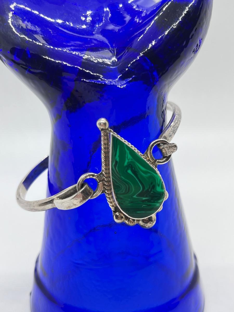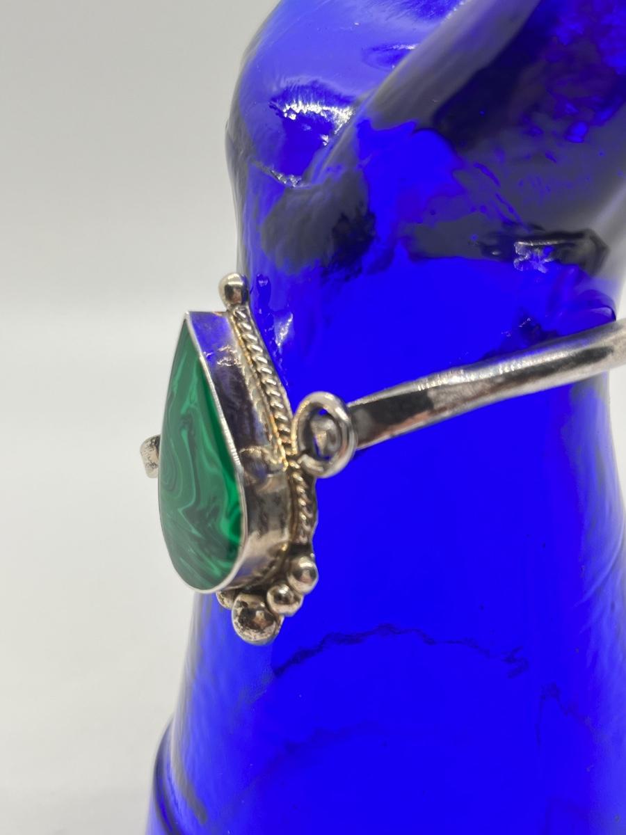 LOT 170: Vintage Taxco Malachite Sterling Silver 925 Mexico Cuff Bracelet