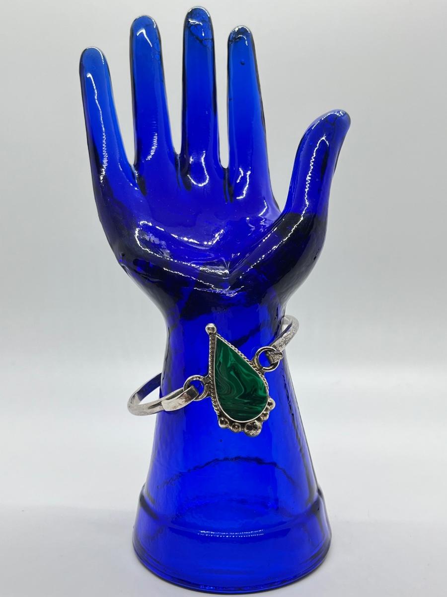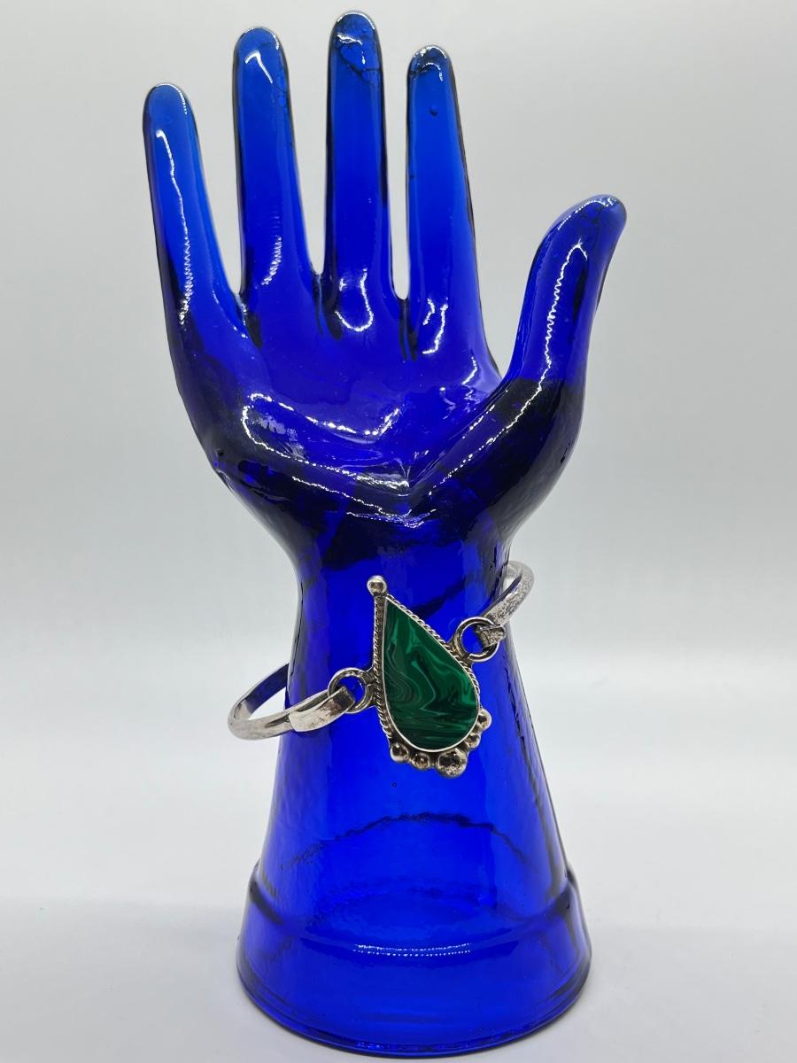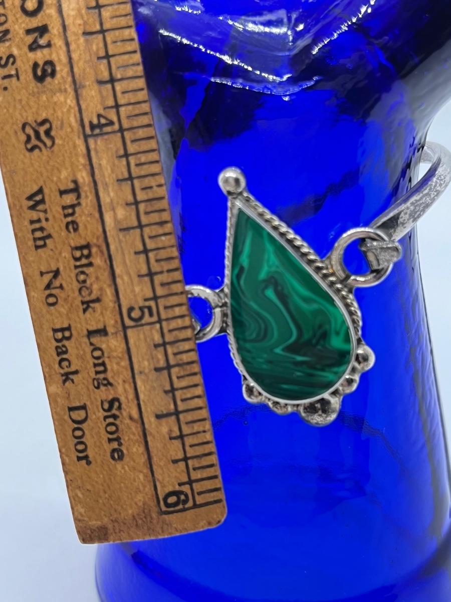 LOT 170: Vintage Taxco Malachite Sterling Silver 925 Mexico Cuff Bracelet