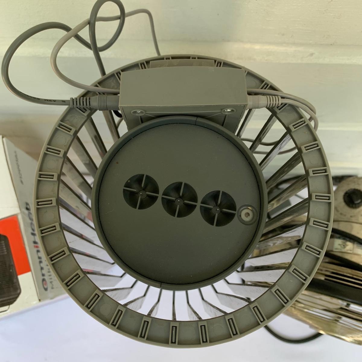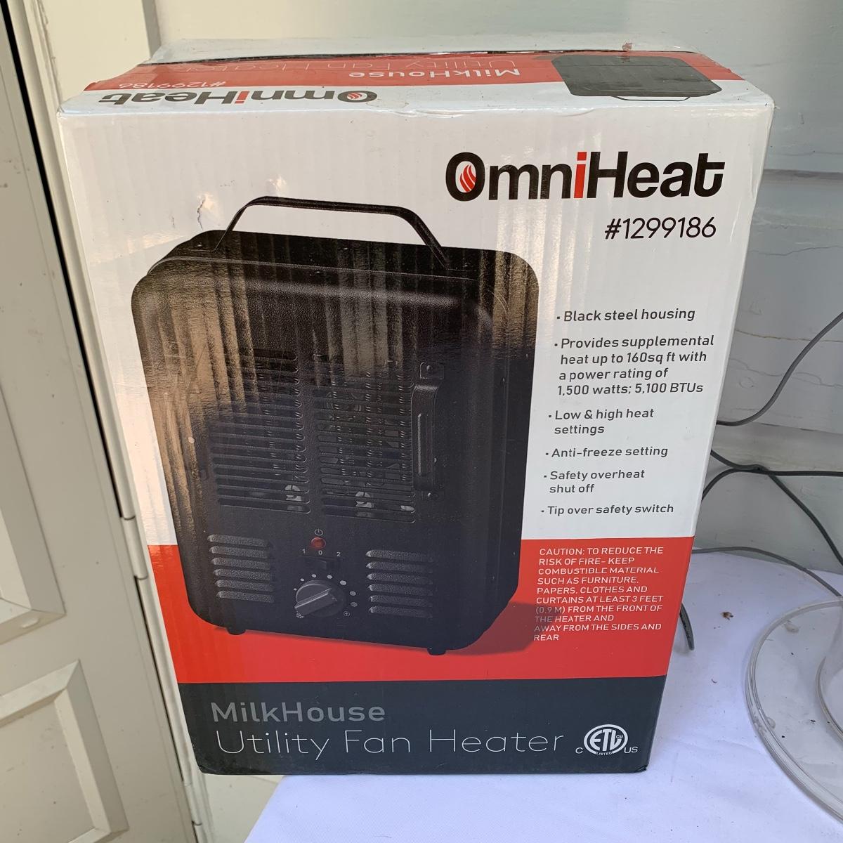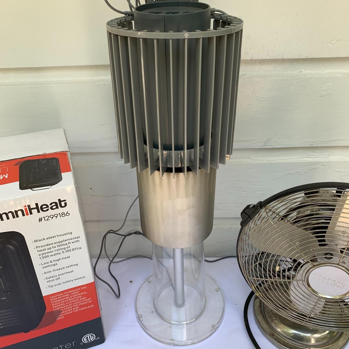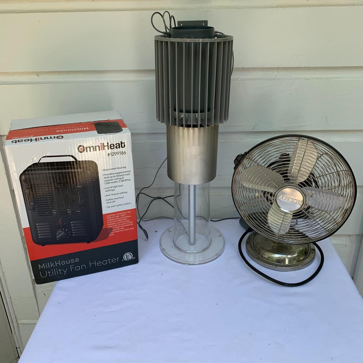 Hot or cold, this lot has your comfort needs met. Included is a new in box omniheat utility fan heater. This model features black steel housing, safety overheat shut off. and a tip over safety switch. Next is an air purifier that stands 24” tall, and brand name is unknown. Last is this vintage style silver fan that features four settings and an oscillator switch. All items powered on when tested, however the fan is not in premium condition. Local pickup only