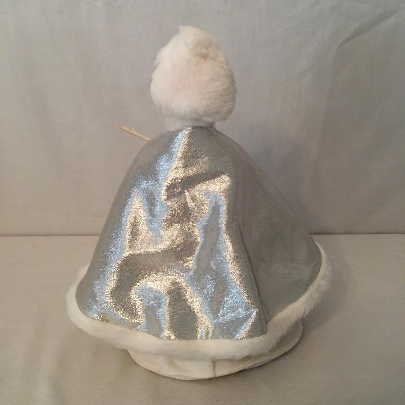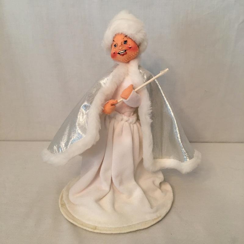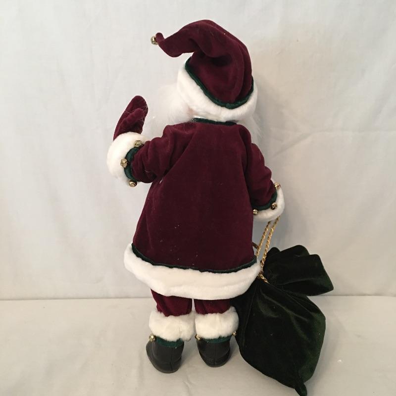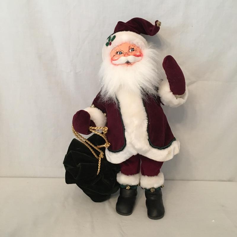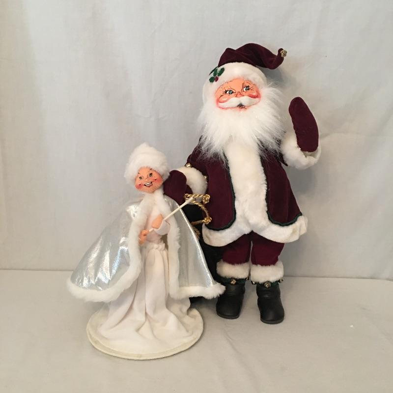 Annalee Santa Claus with a bag measures 16” tall and Mrs. Claus with a cape. Get in the Christmas spirit with these two timeless characters. Santa is missing his Annalee tag.