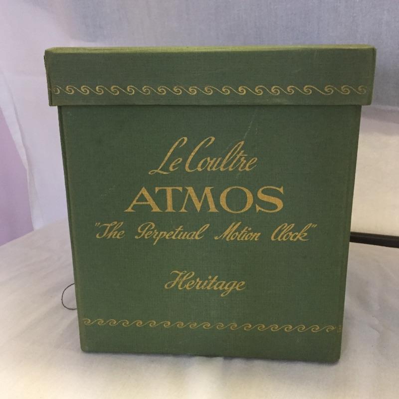 Superb vintage Atmos brass and glass clock that appears to be in working order and keeping time. Clock runs from a balance wheel therefore no winding up needed. This beauty even comes with its handsome original box making it even more special. Item measures 6” x 8” x 10”.