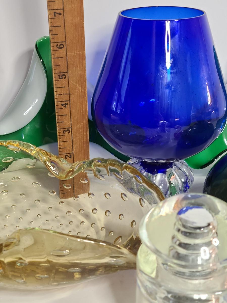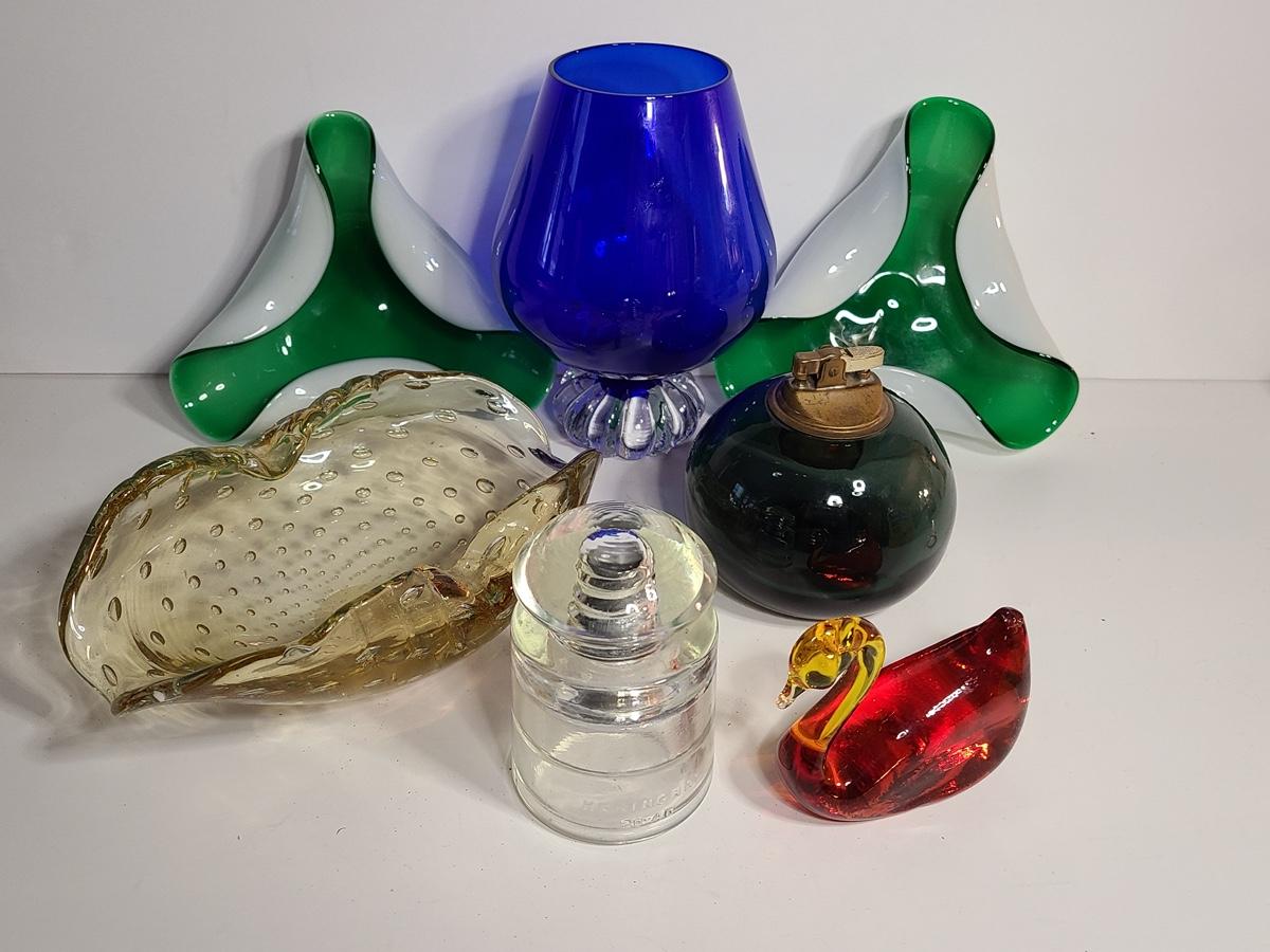 Lovely lot of glass items including a blown glass lighter holder, untested. The pictures show condition, measurements if taken, and what is included in the lot. Due to the large amount that we photograph and the time frame, we are not always able to take measurements. All items unless noted, are pre-owned and have been used. If you purchased furniture, you must bring help. We do not allow one person to carry large furniture out on their own. Bring help, tools and a truck for the safety of our client’s homes, and your personal safety. Company policy. Thank you.