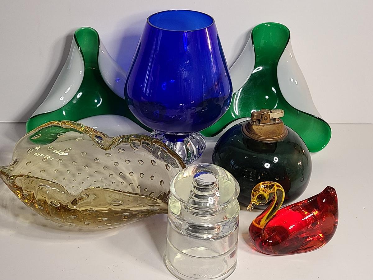 Lot 170: Blown Glass Lighter, Insulator, Art Glass and More