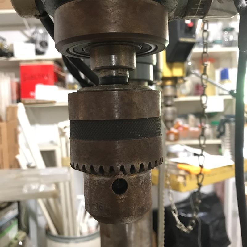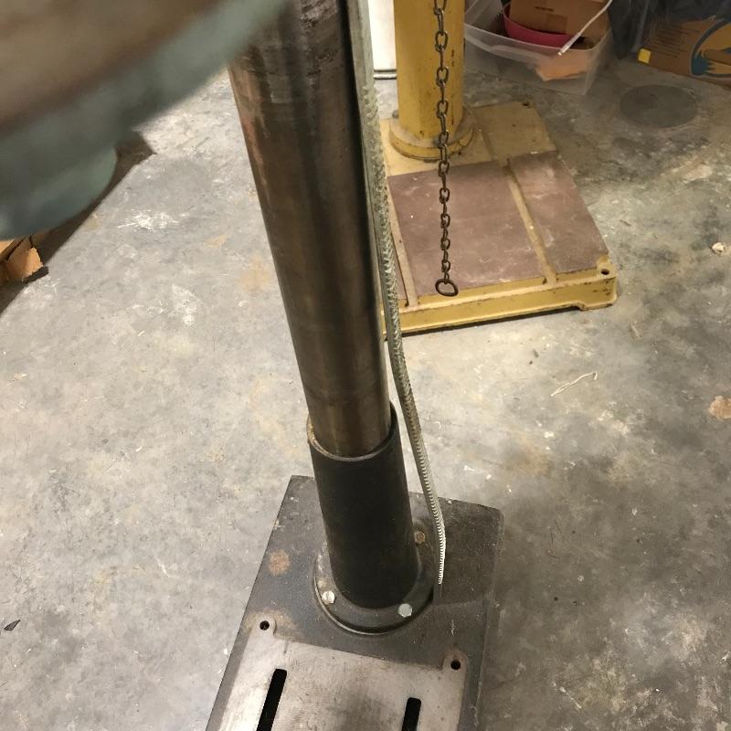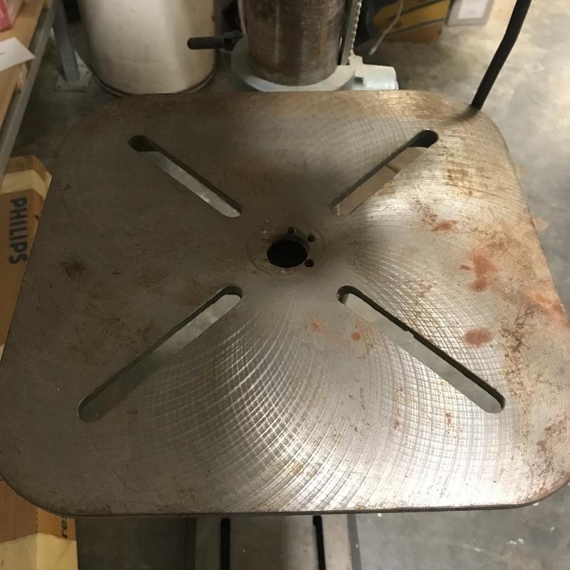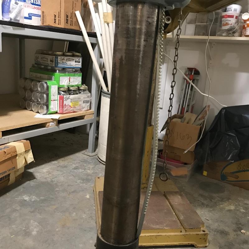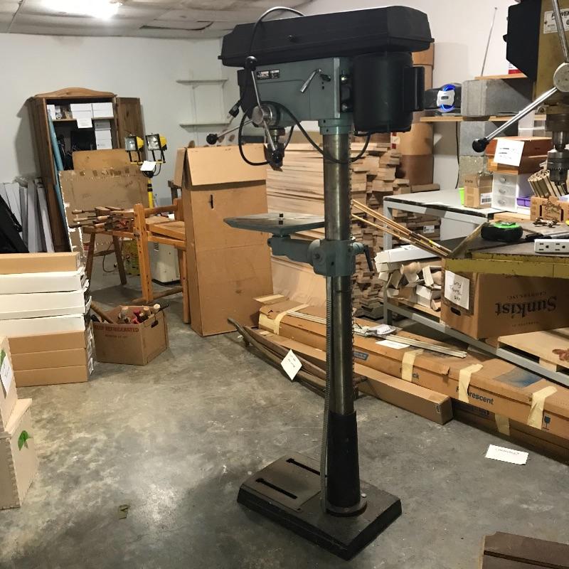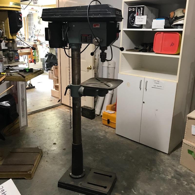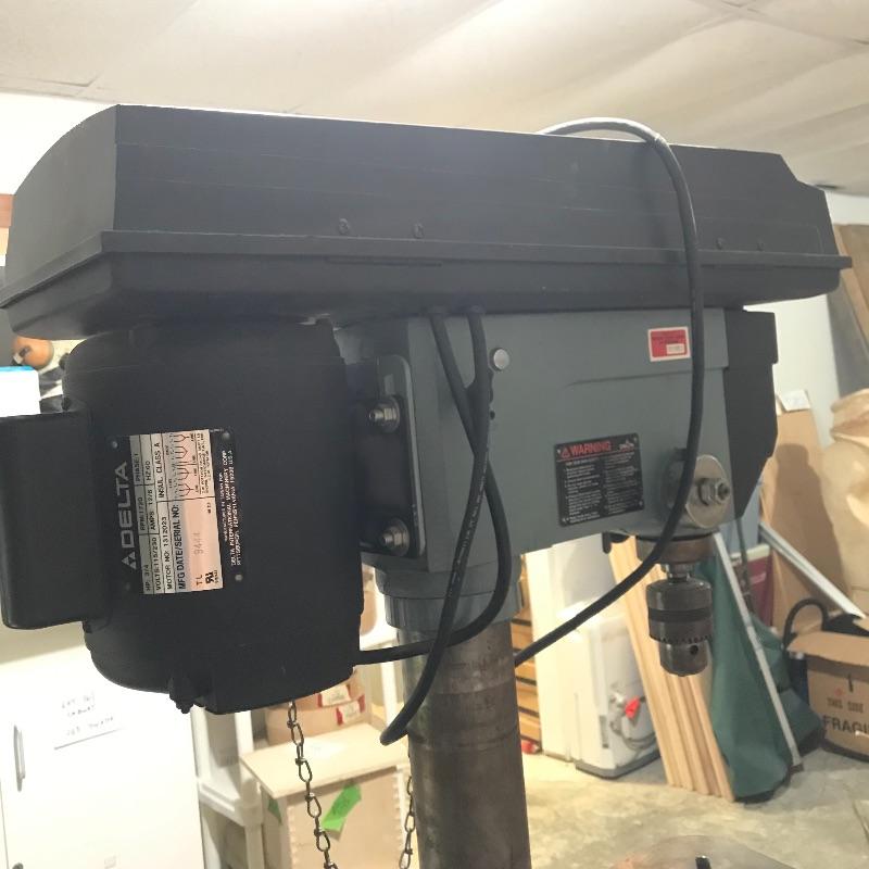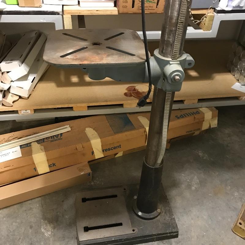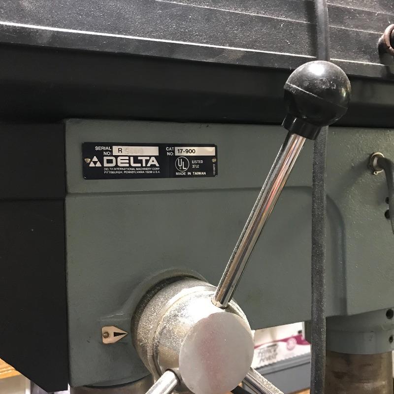 Working Delta Drill Press Model 17-900, serial number 1312023. The press works when plugged in but needs some repairs to the table height adjuster, see photos. The metal height adjustment piece appears to need to be flattened out and welded back on to column. Table height is currently adjustable, but safety and effectiveness is unknown. All other parts seem to be in great working order. Local pick up only, please bring help to load.