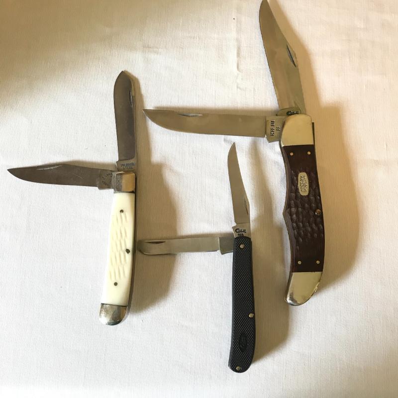 Two Case bone double bladed pocket knives and another double bladed white bone? pocket knife. The tallest CaseXX is. Shipping available.