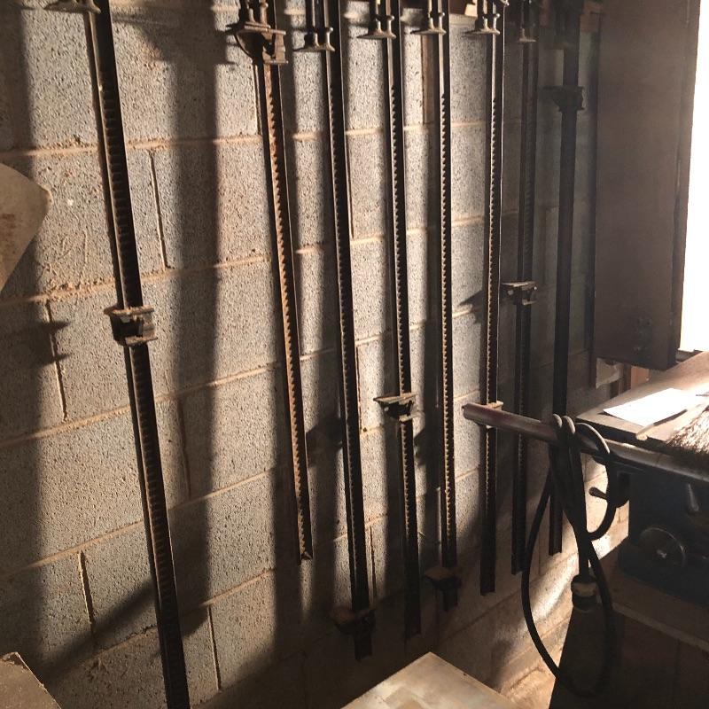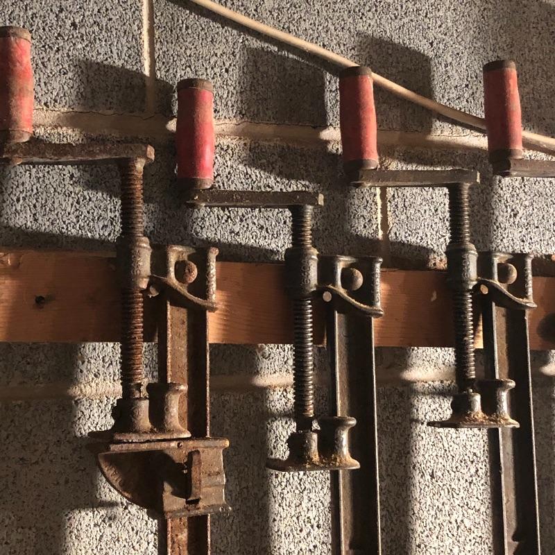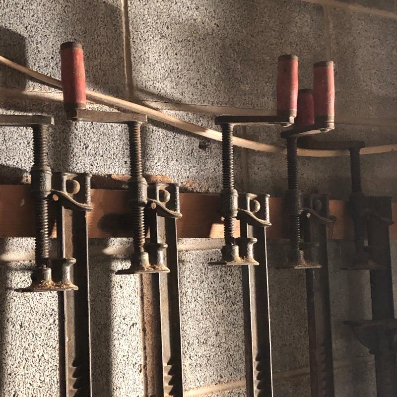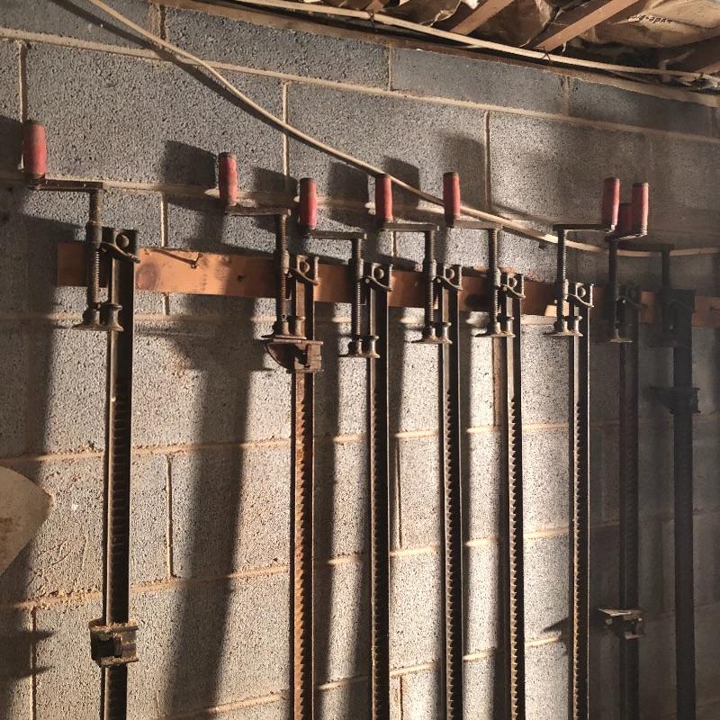 All but one bar clamp measures approximately 53” long; the one that is shorter measures 42.5”. Local pick up only.