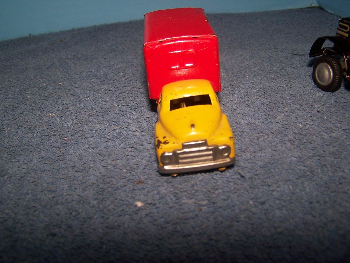 THESE ARE GREAT VINTAGE TIN LITHO FRICTION TOYS!!! TRUCK-JAPAN. JALOPY-4 3/4'' LONG.. THEY WORK.. LIGHT WEAR..