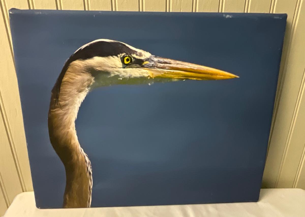 Heron Profile photograph on canvas. Measures 13 inches tall and 16 inches wide