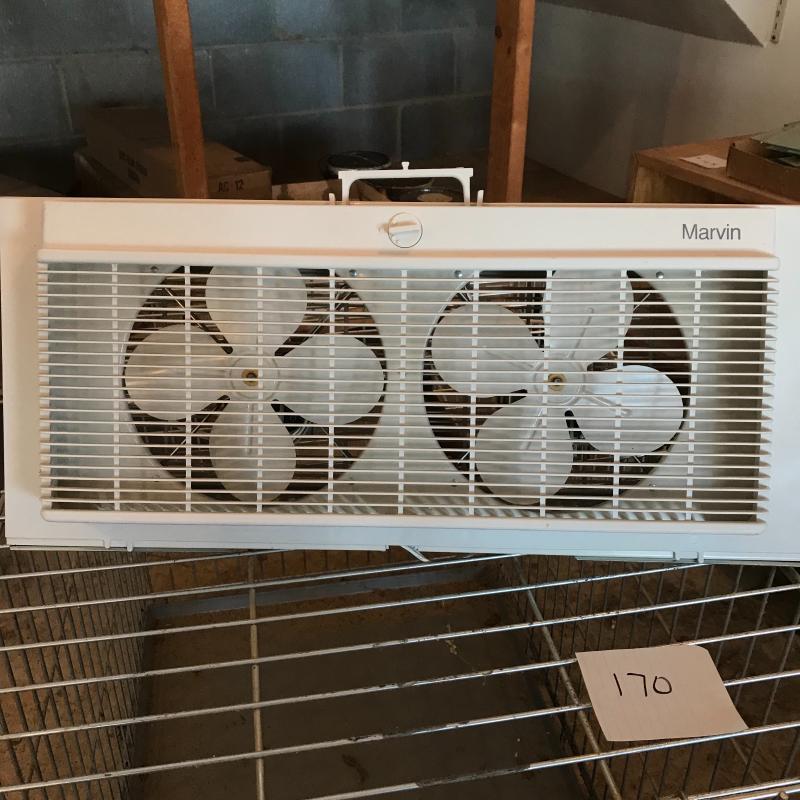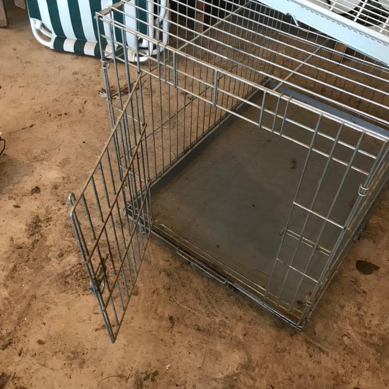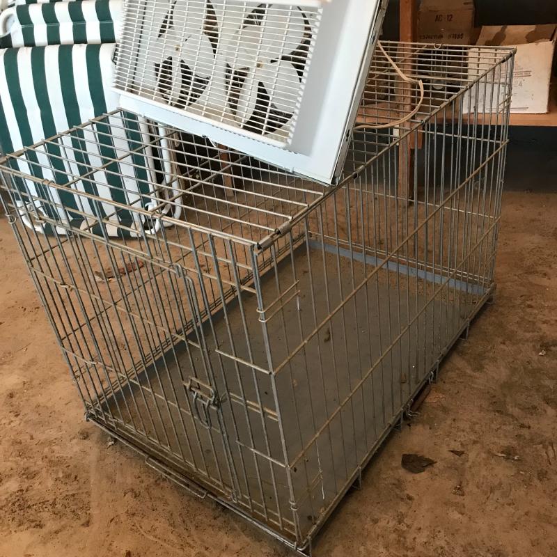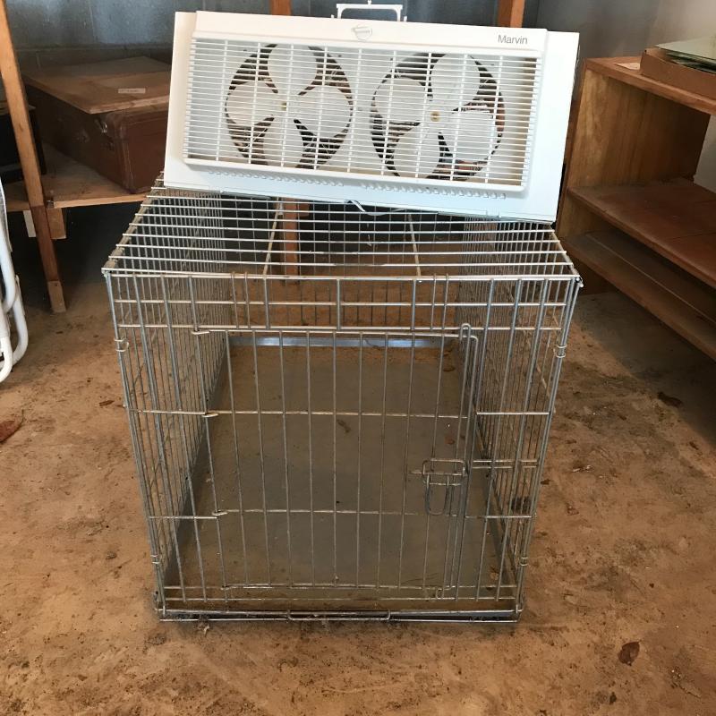 Kennel can be disassembled but appears to be held together with little crimpers which could be cut. You will need to bring tools for that. Kennel measures 35.5” x 24” x 27”. Window fan by Marvin can be reversed. This lot is available for local pick up only in Flat Rock, NC only.