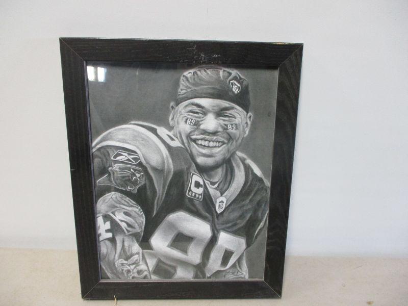 Lot 170 - Local Artist Framed Steve Smith Carolina Panthers