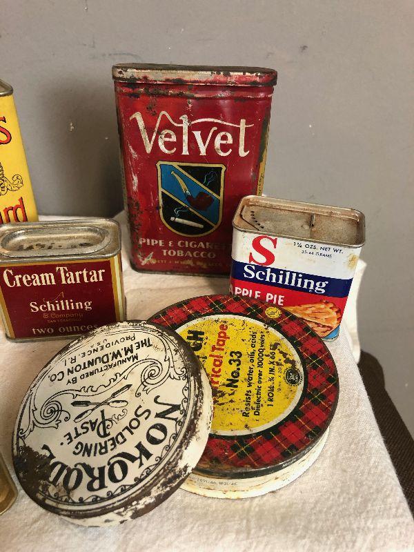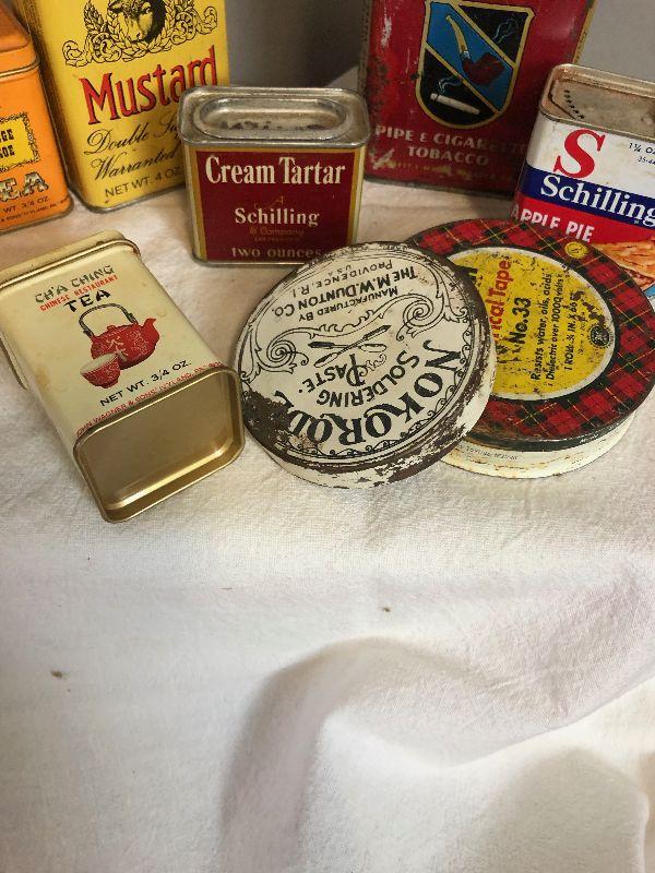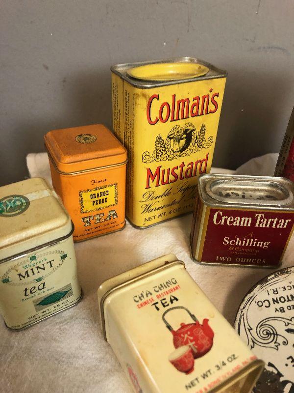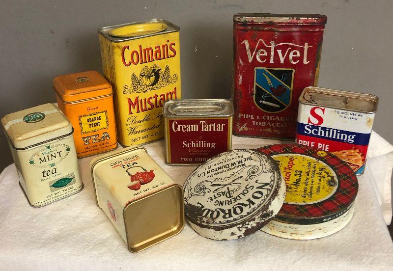 Lot #170 Lot of Vintage Tins: Mustard, tobacco