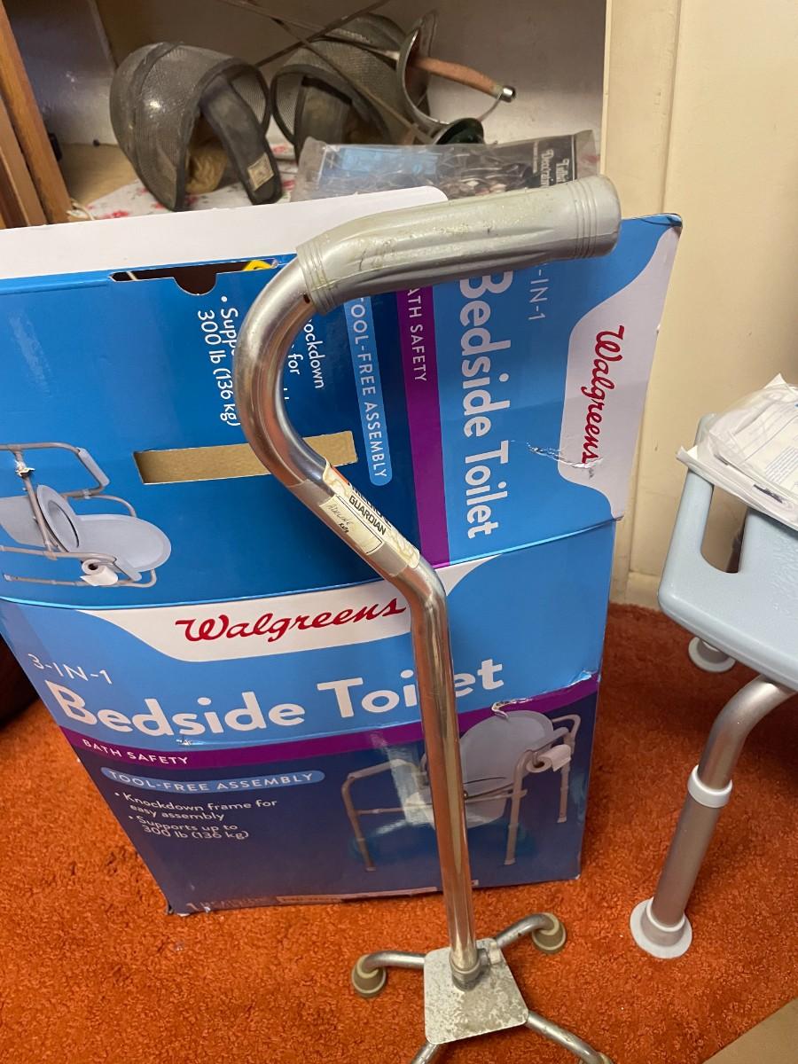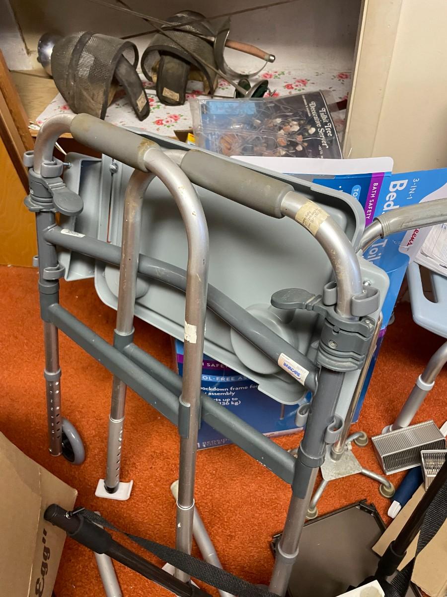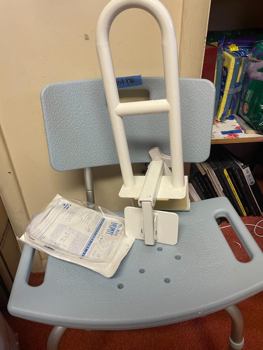 lot 170- medical chair, bath handle, bedside toilet, cane