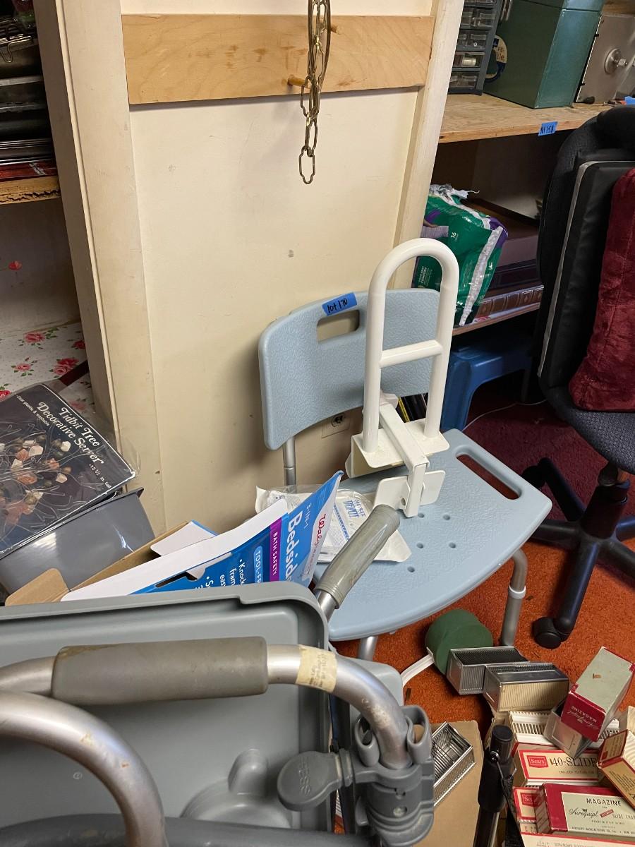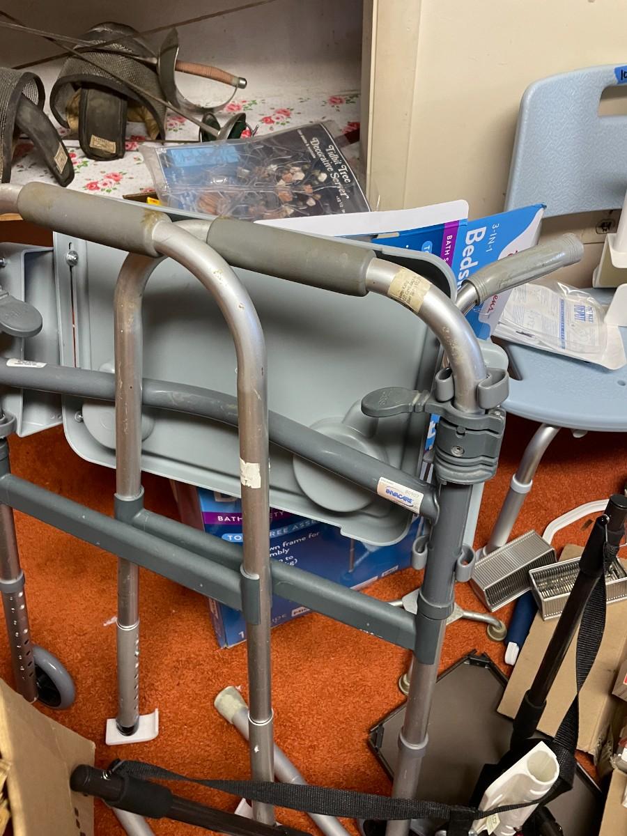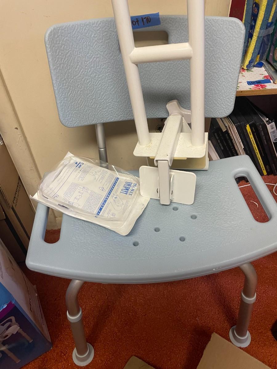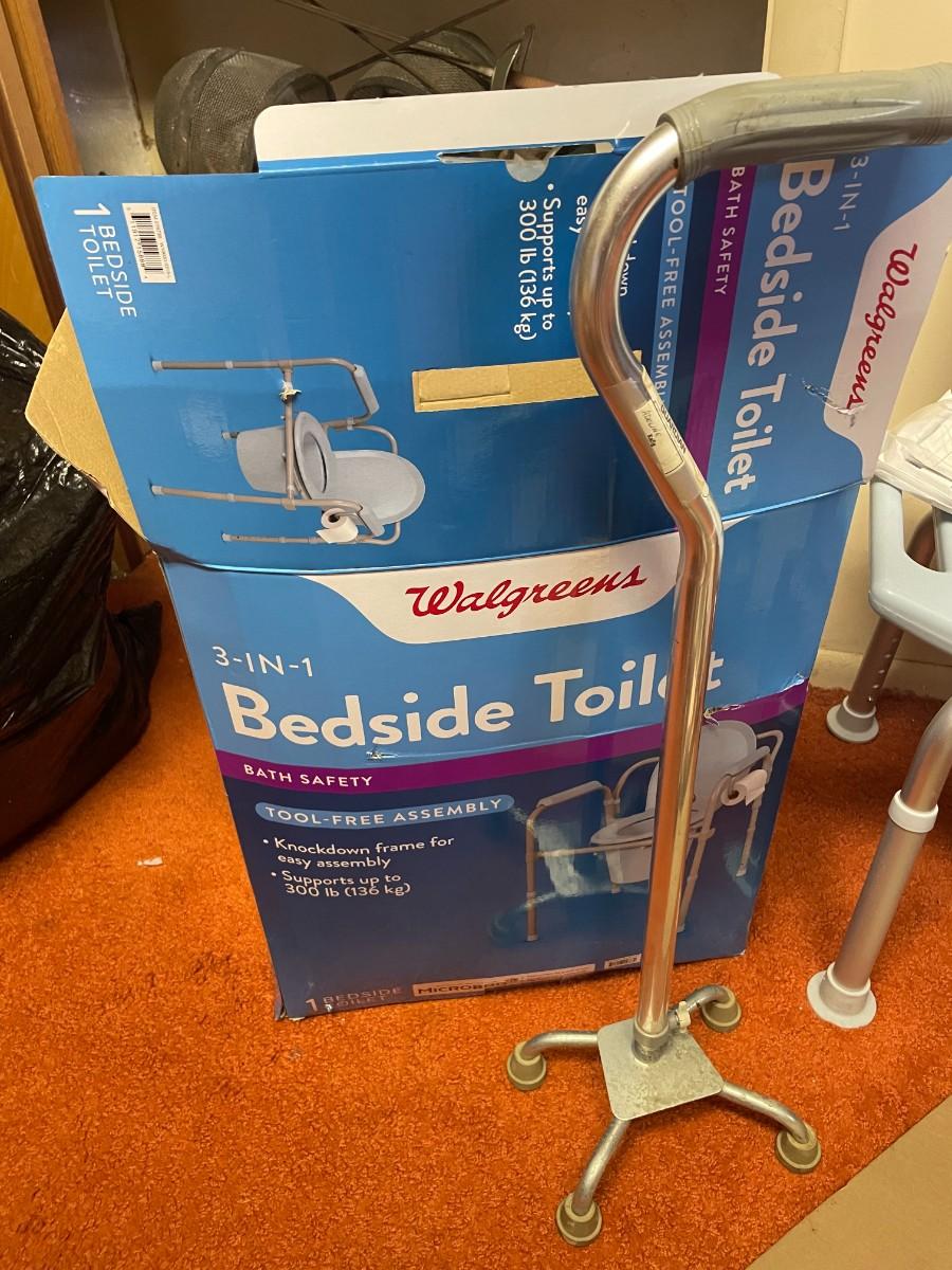 lot 170- medical chair, bath handle, bedside toilet, cane
