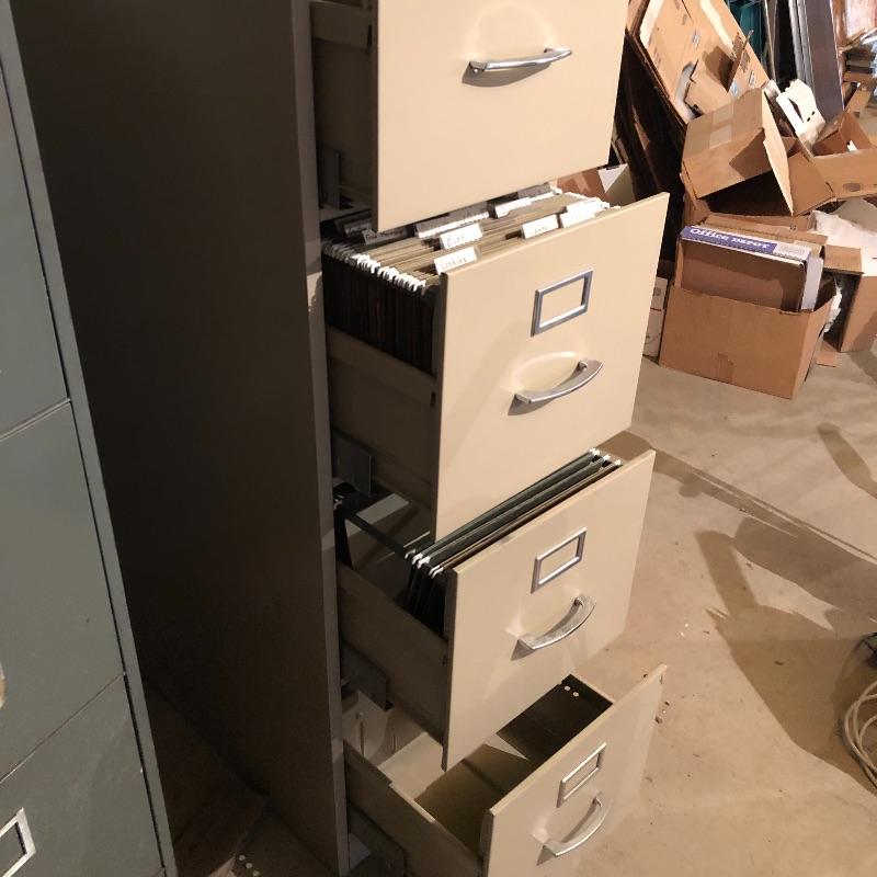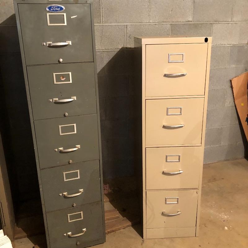 You will never have to search for another piece of paper again with this lot! This lot includes two heavy duty filing cabinets. The gray filing cabinet is a Columbia cabinet made out of Fort Washington, Pennsylvania and has five drawers. Each drawer has a ball bearing arm and rolls out very smoothly. It’s dimensions are 14.5” x 60” x 28.5”. The beige filing cabinet is a four drawer cabinet and also has ball bearing arms. It’s dimensions are 15” x 52” x 25”. Also included, Bring help to load these filing cabinets as they are heavy. Local pick up only.