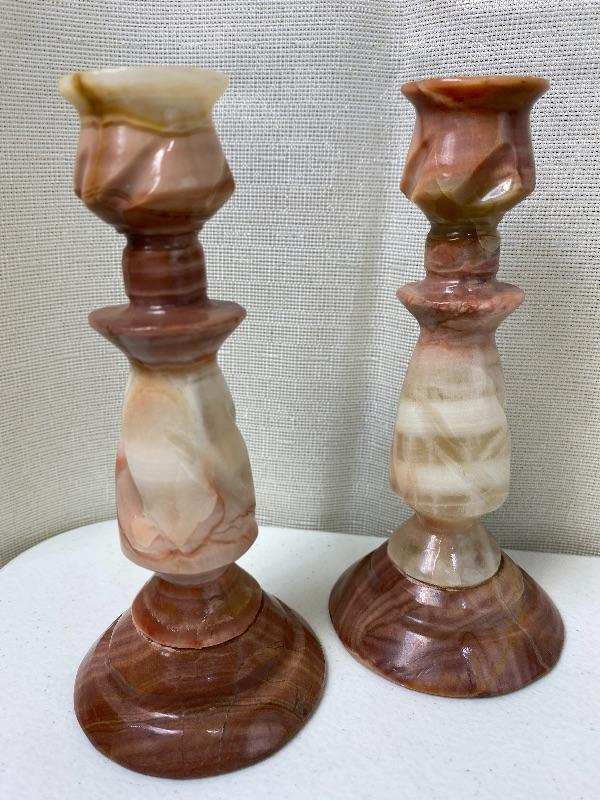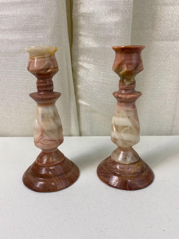 Lot# 170 S Vintage Granite Candlesticks Pink Mauve Cream 6” Set