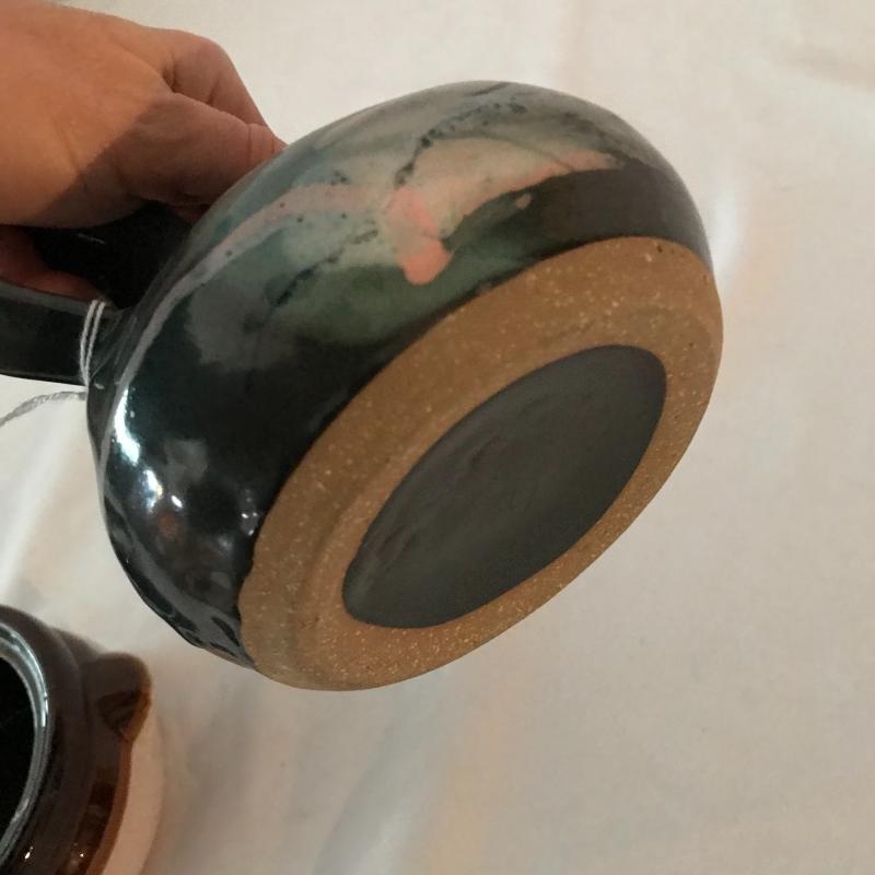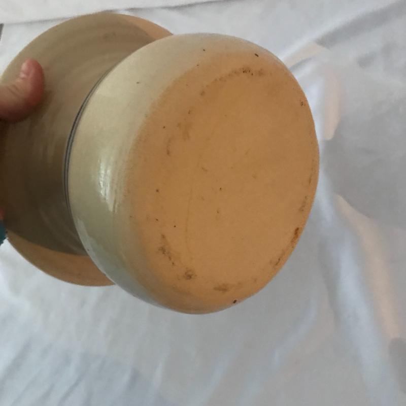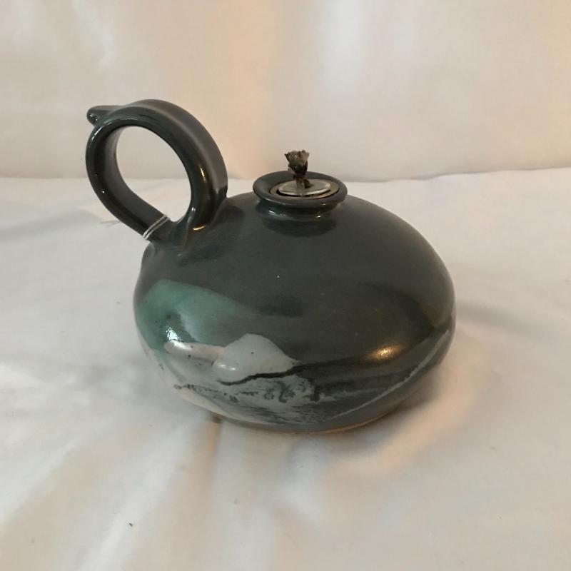 Lot includes five pieces of pottery and ceramic kitchenware including spittoon and oil lamp. No shipping available. Local pickup only in Maggie Valley, NC.