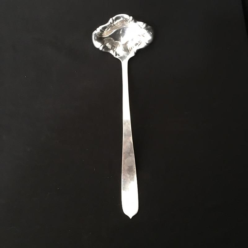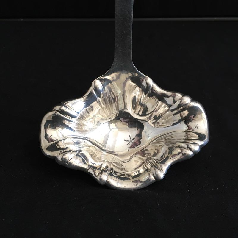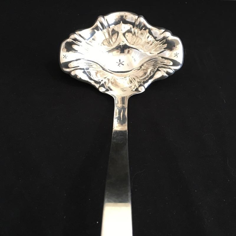 Sterling ladle. Bring back the beauty of punch with this classic ladle. Ladle measures 16” x 5.25” x 2.5”. Marked Sterling. Starting price is near melt value.