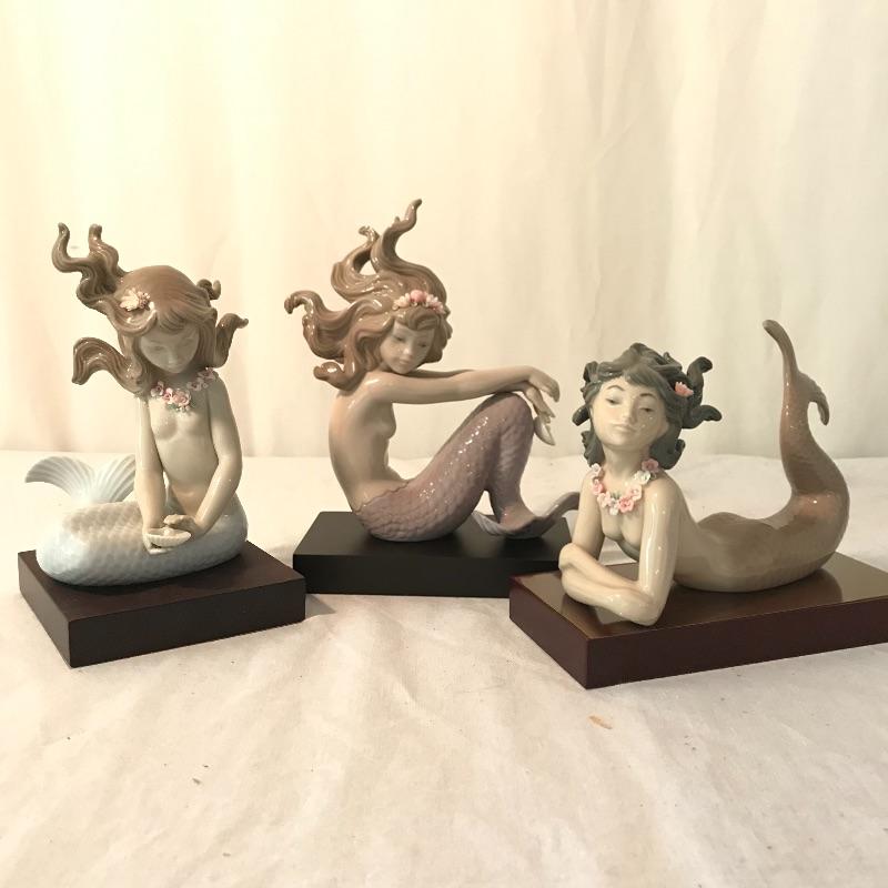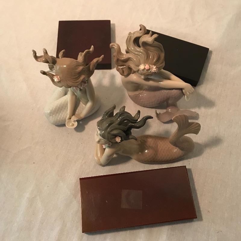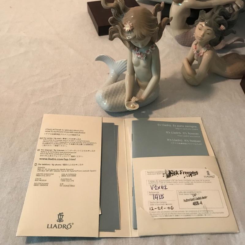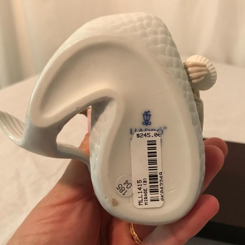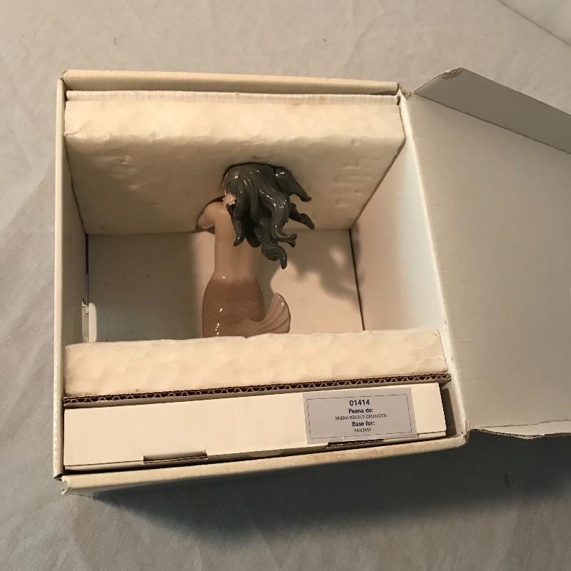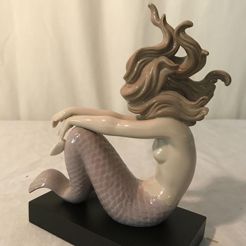 Find your inner mermaid with “Illusion”, “Fantasy”, & “Mirage” from Sirena Brazos Costado. These jaw dropping hand painted Lladro porcelain mermaids are all in excellent condition with awesome details. Each has the manufacturer wood stand, box and packaging. “Fantasy” measures approximately 6.5” x 4.5”. See photos for details, some still have their original price tag. Shipping available.