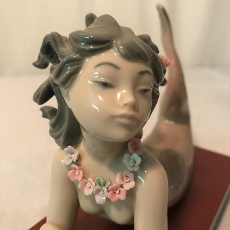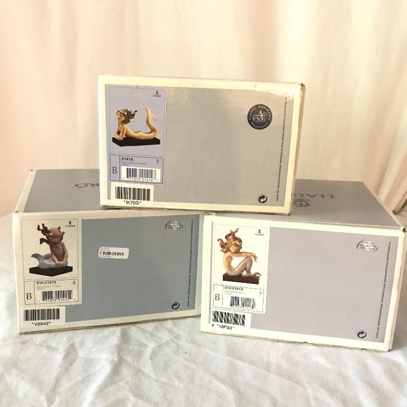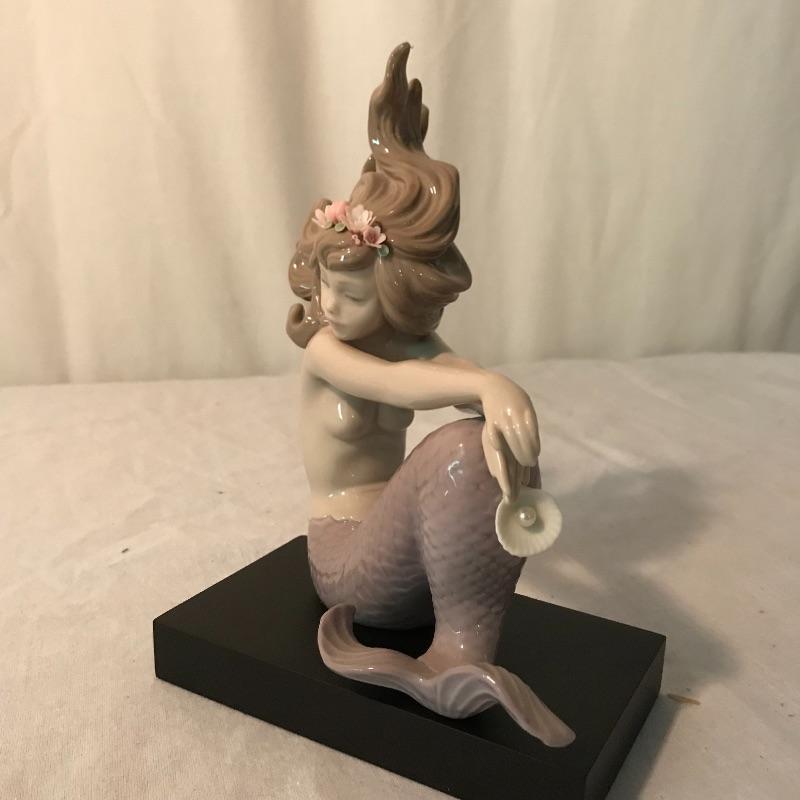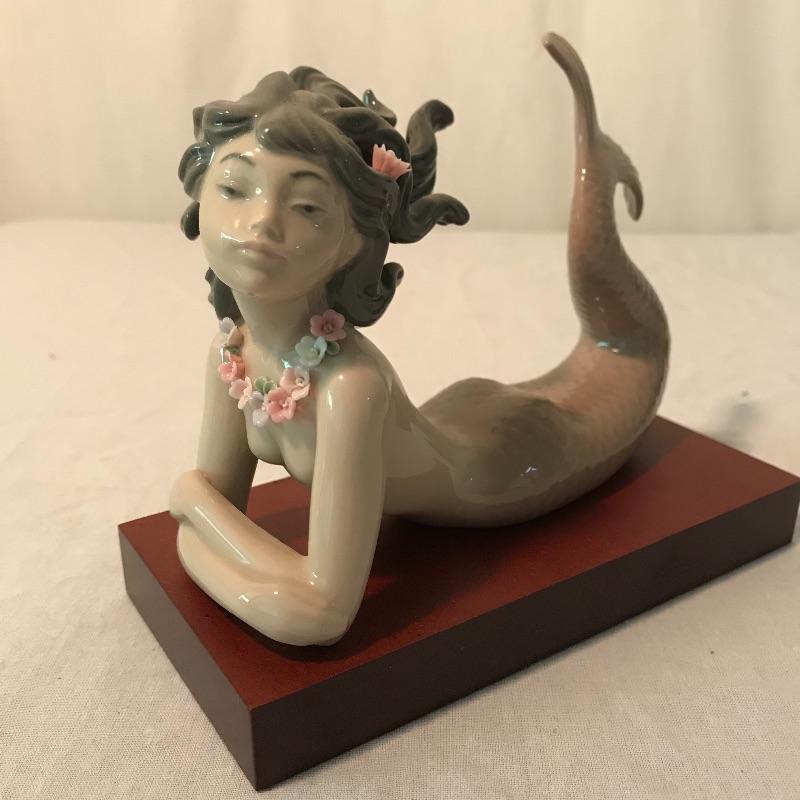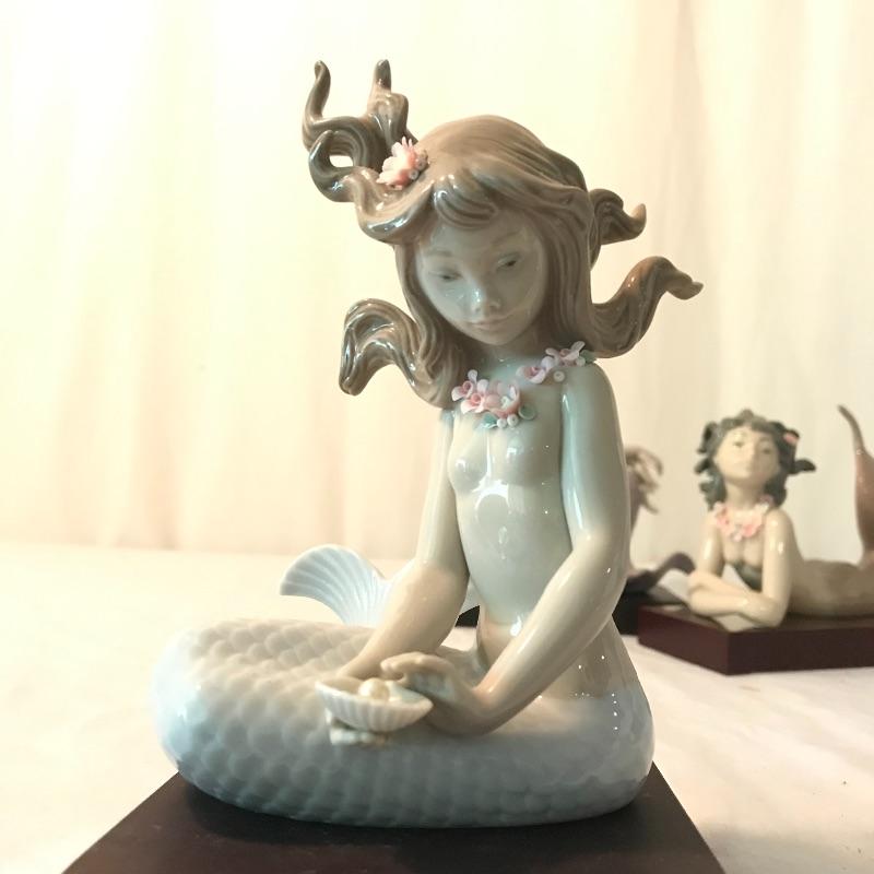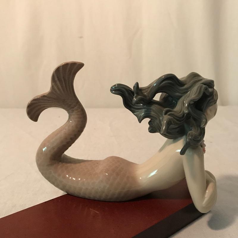 Find your inner mermaid with “Illusion”, “Fantasy”, & “Mirage” from Sirena Brazos Costado. These jaw dropping hand painted Lladro porcelain mermaids are all in excellent condition with awesome details. Each has the manufacturer wood stand, box and packaging. “Fantasy” measures approximately 6.5” x 4.5”. See photos for details, some still have their original price tag. Shipping available.
