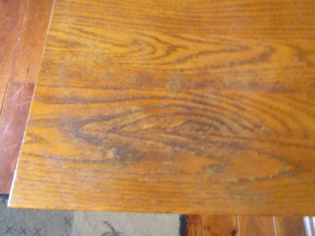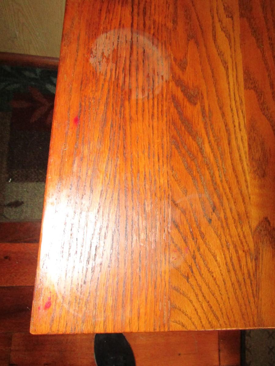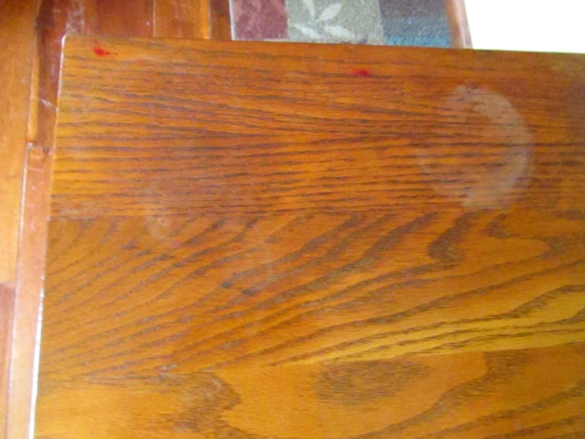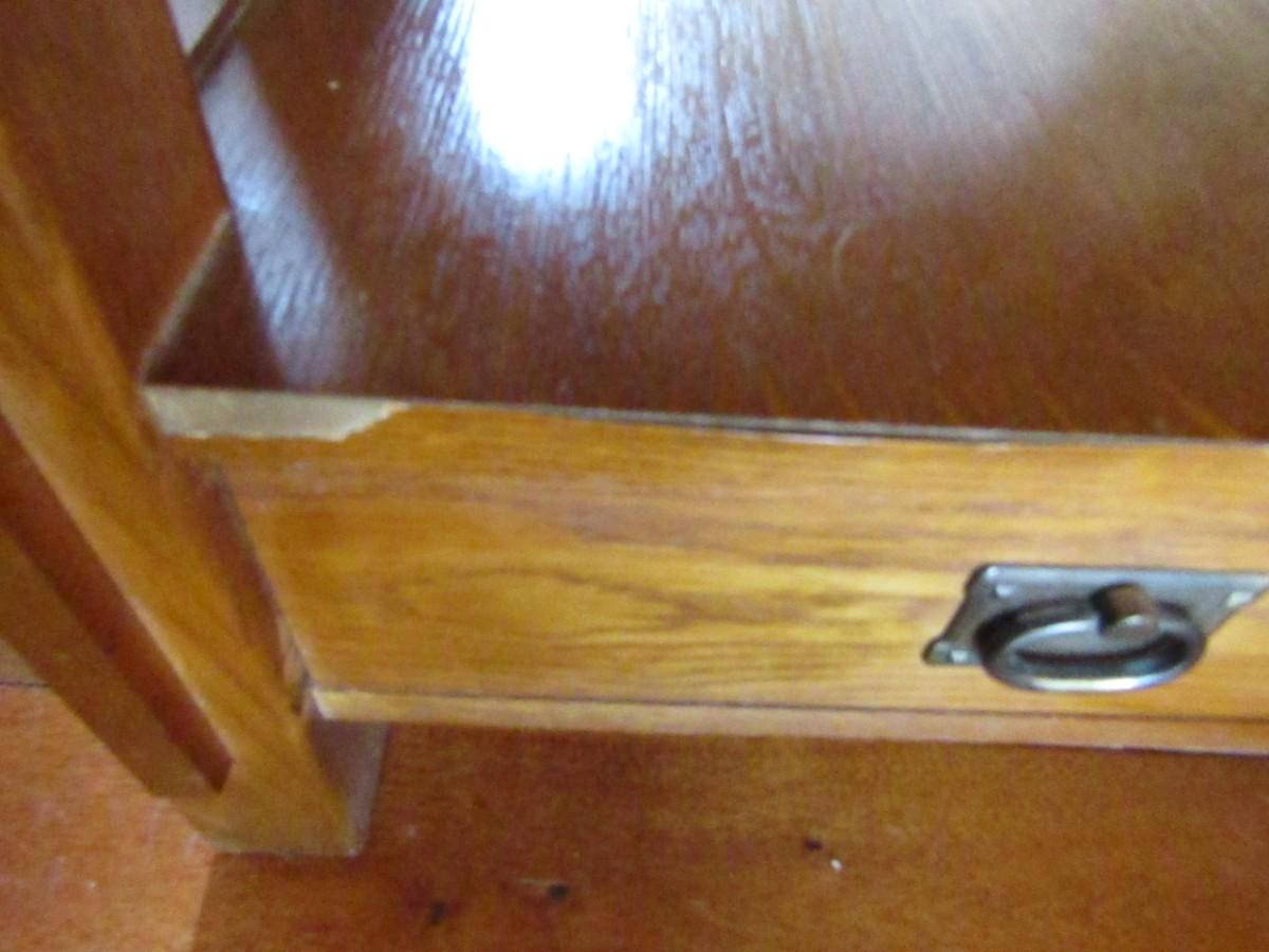 MISSION STYLE END TABLE WITH 1 DRAWER, THE FINISH IS STARTING TO PEEL OFF IN PLACES 22" X 27" X 22"