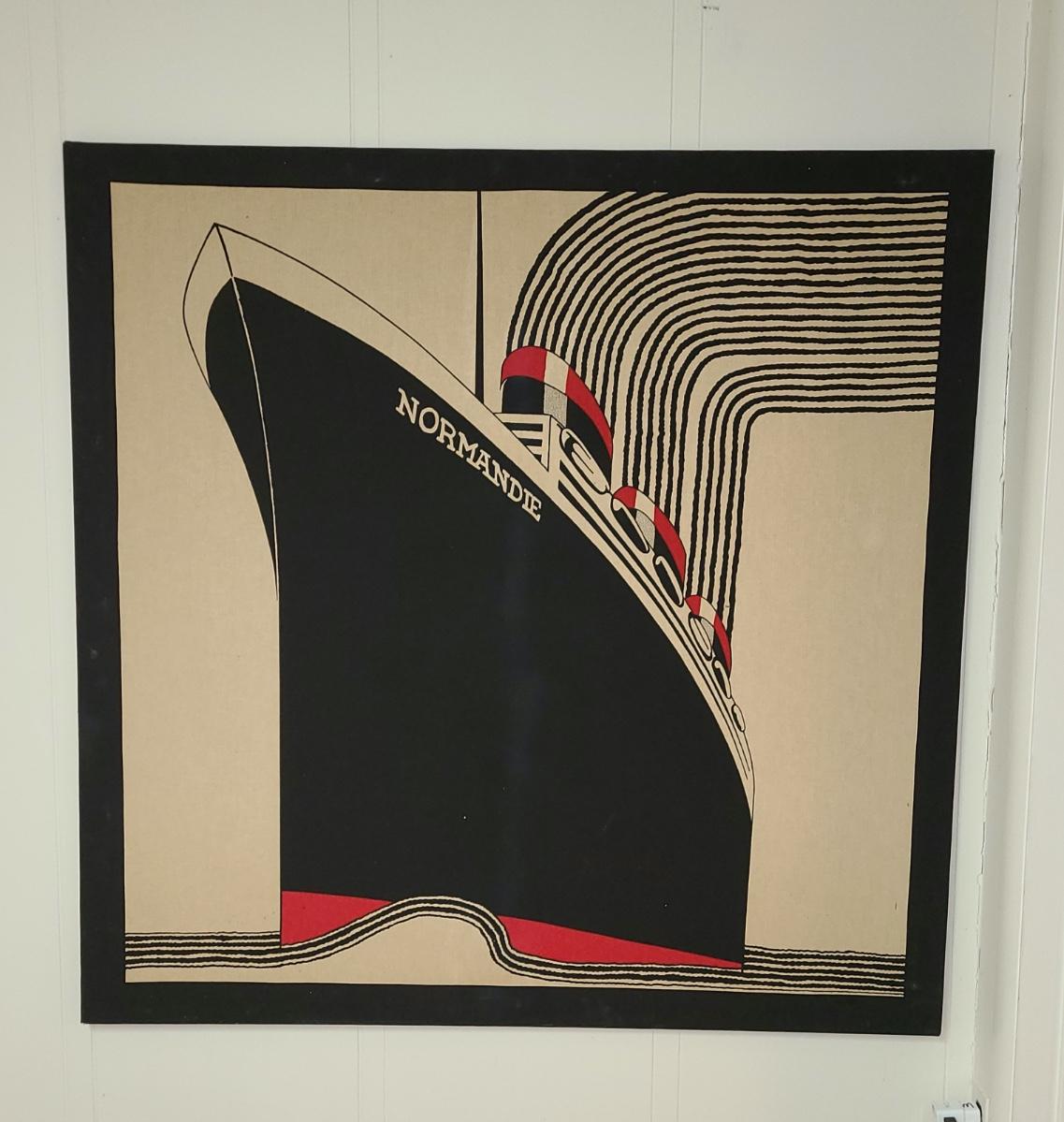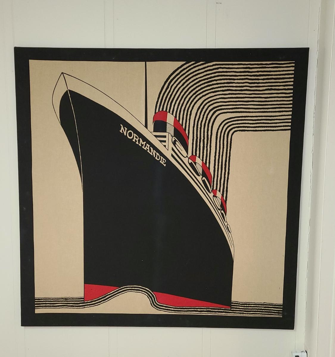 Lot 170: Vintage SS Normandie Fabric Wall Hanging by Francis Butler for Stromma Sweden Art Deco