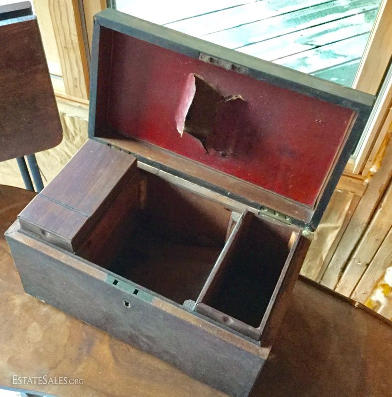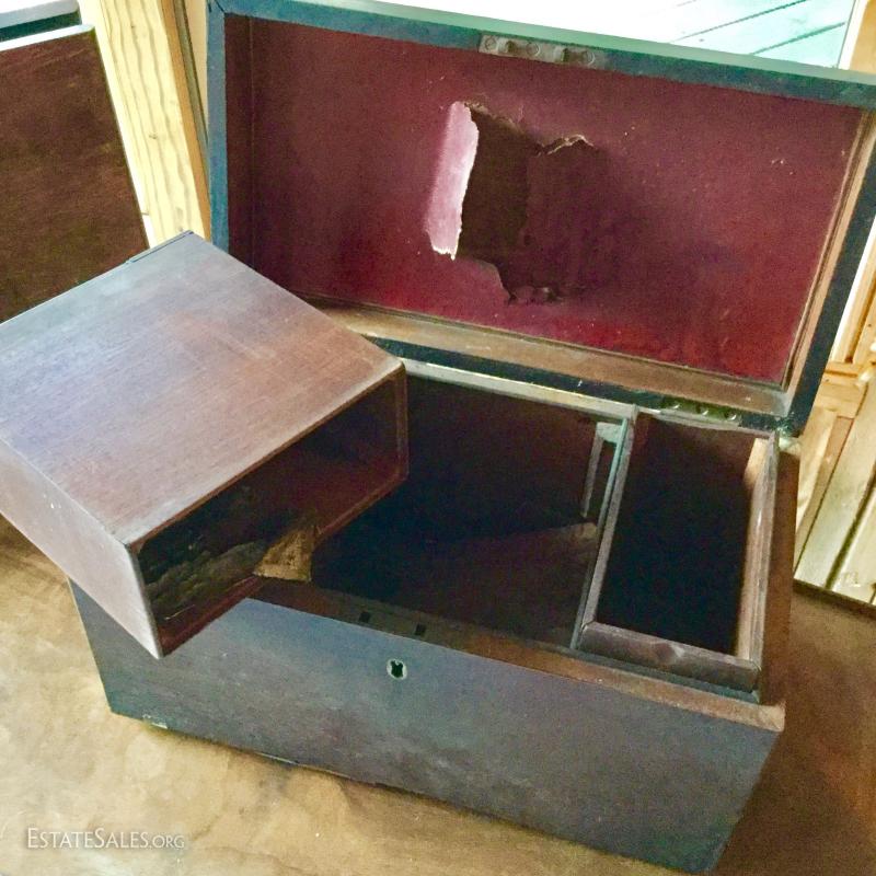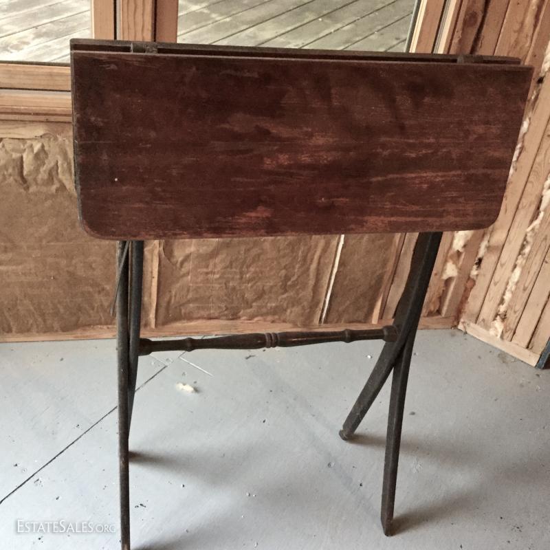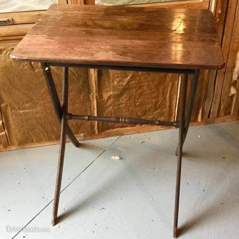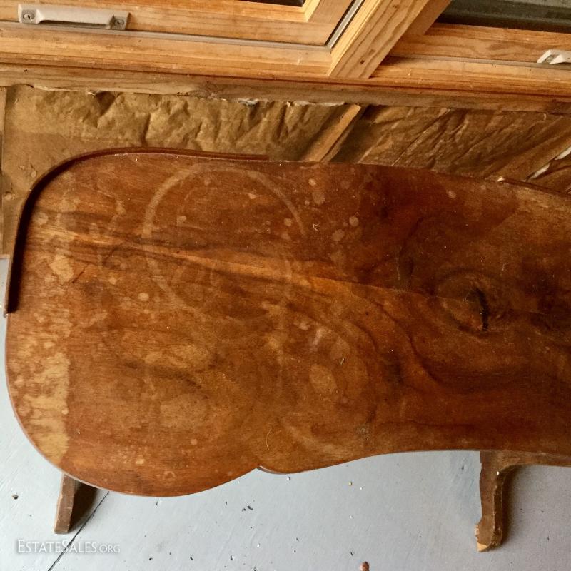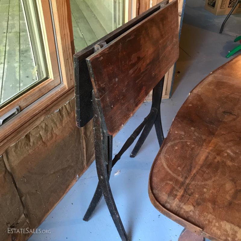 Gorgeous style on the skinny curved side table. It measures 38.5"l x 11.5"w x 26" h . Lot also includes a great wooden folding table that opens to 24"l x 19"w x 27.5"h. Nice wooden box with insert (13"l x 7"w x 7"h) also included in lot. All need some TLC but are sturdy. See photos. No Shipping. Only local pick up in Flat Rock, NC.