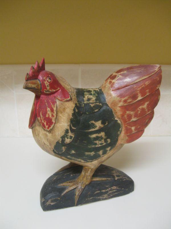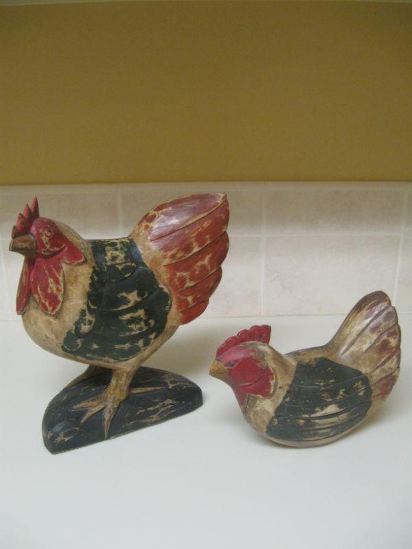 2 Folk Art Wood Roosters