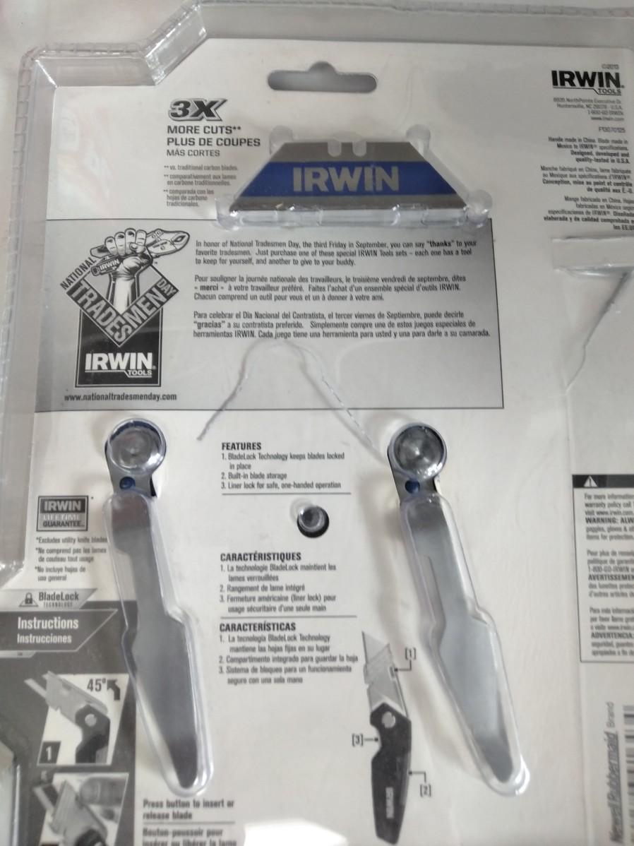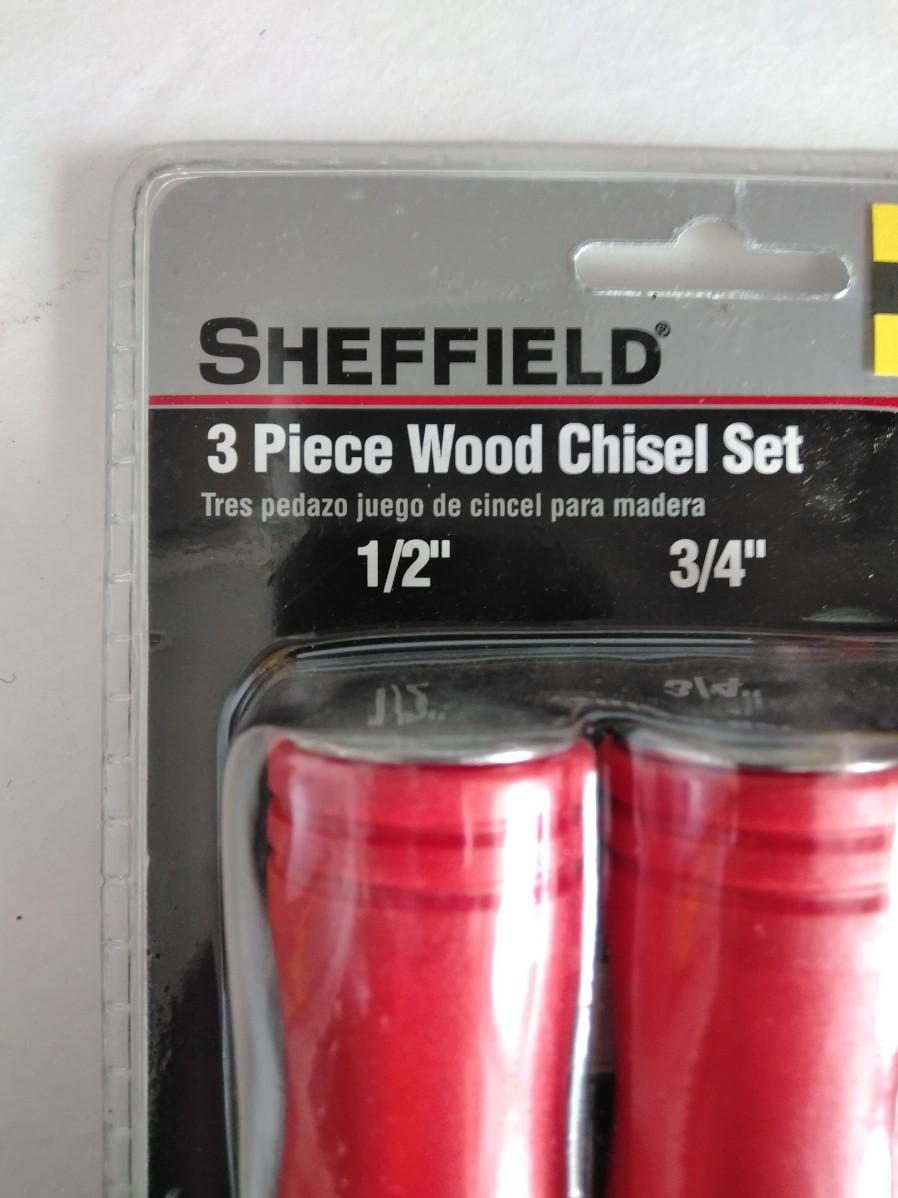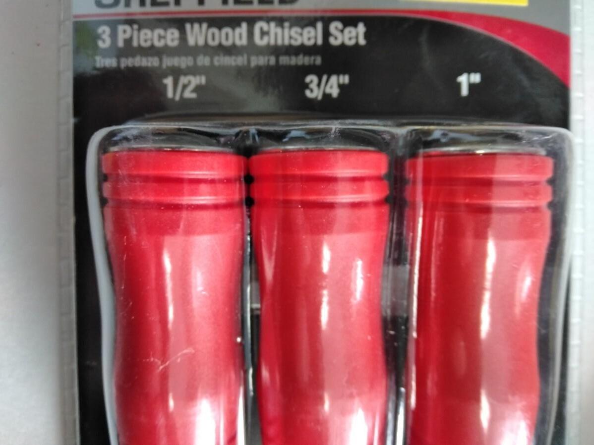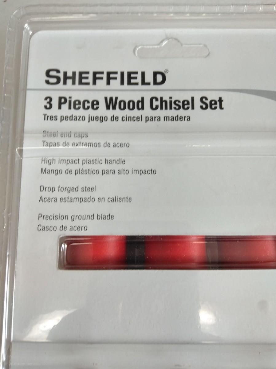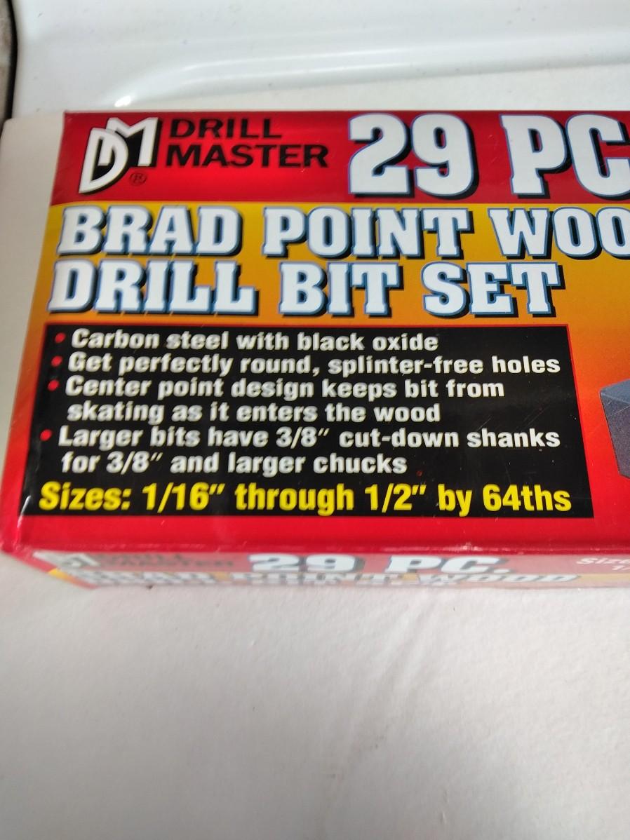 29 PIECE BRAD POINT WOOD DRILL BIT SET, SHEFFIELD THREE PIECE WOOD CHISEL SET, STANLEY 100' TAPE MEASURE, PITTSBURGH 16 OZ. HAMMER, AND IRWIN LOCK BLADE UTILITY KNIVES.